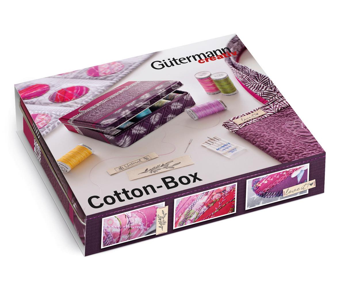 Förvaringsbox med quilt motiv innehållande 12 rullar Cotton 30 300 m bomullstråd i olika färger, 5 st Universal Symaskinsnålar samt 3 applikationer. Cotton 30 bomullstråd gjorda av naturfibrer är utmärkt att använda när du syr sömmar och dekorsömmar både förhand och med symaskin. Den naturliga bomullen är noggrant bearbetad så att den är knutfri. Symaskinsnål: Standard 70-90