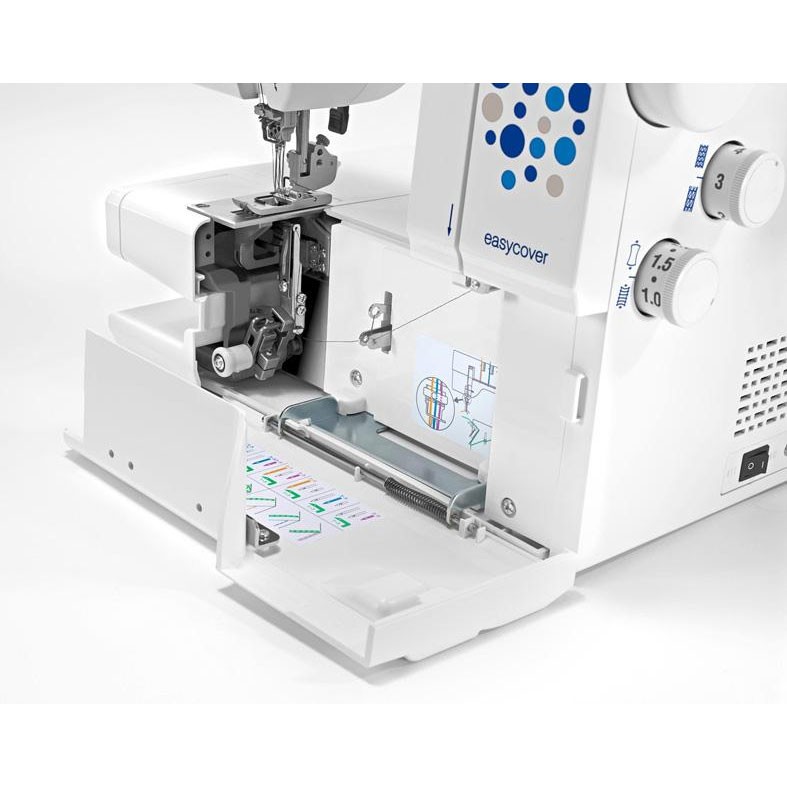 elna easycover har industriella trådspänningsfunktioner såsom STS (Seam Tightening SystemTM) för sömnad i tjocka tyger hjälper till att dra åt gripartråden så att sömmen blir platt och fin samt TLC (Tension Level Control) som förhindrar att tunna tyger rynkar sig.