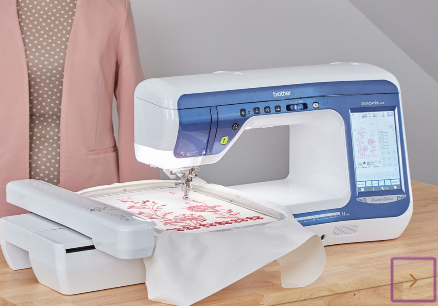 11 1/4" (285mm) arbetsyta. Den extra stora arbetsytan 11 1/4" (285mm) ger Dig större arbetsyta än tidigare. Innov-is V5 ger Dig en större yta för Dig som quiltar, syr kläder och hemprojekt.