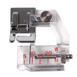 3. Justera guiden för bredden på kantbandet med hjälp av skruven på pressarfotens högra sida.
