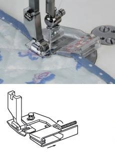Kantbandsfot med guide för att sy fast kantband upp till 40 mm breda.