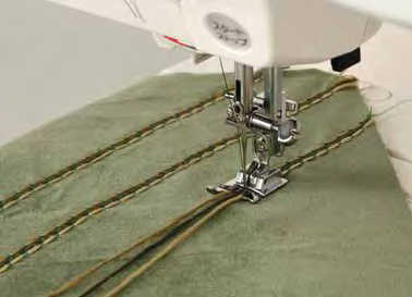 Spåren på fotens ovansida håller 1-3 snoddar på plats medan man syr fast dem med dekorsöm.