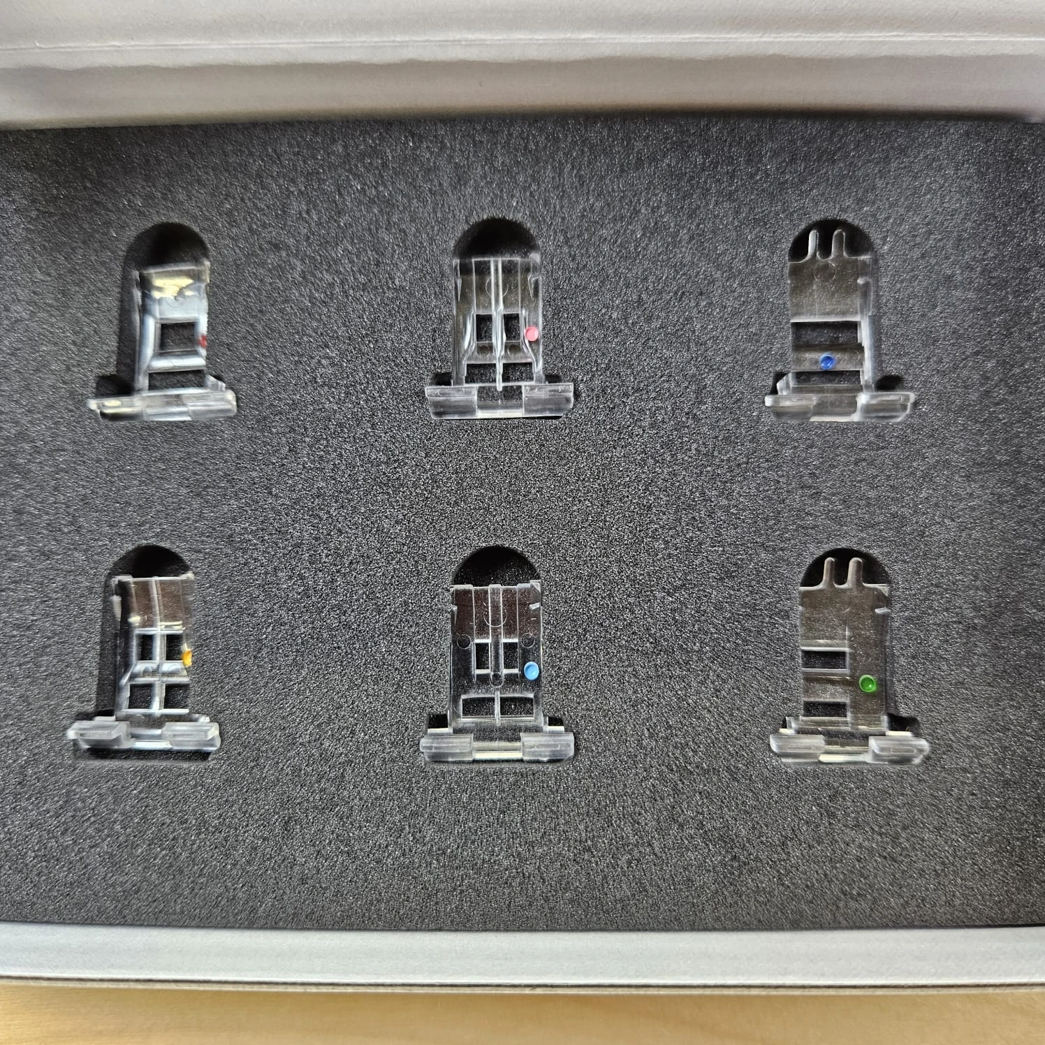 Med sex olika insatser som byts ut i standardfoten kan du enkelt skapa unika effekter med precision och stil. Perfekt för allt från kläder och accessoarer till heminredning!