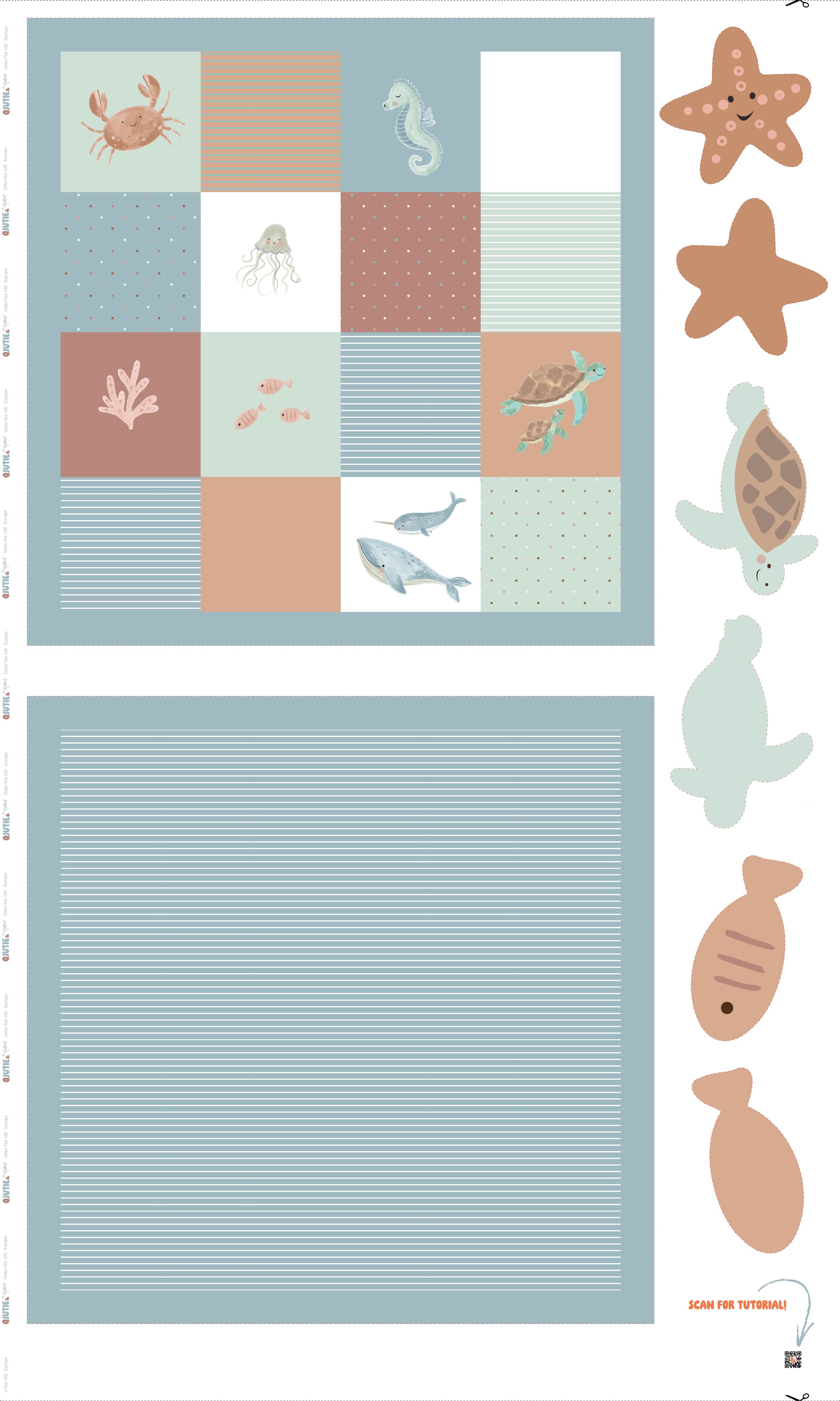 Sy en mysig kryp plädMed denna praktiska, färdiga panel kan du skapa denna bedårande pläd med tillhörande kramdjur på nolltid. Instruktionerna finns på inte mindre än tre språk på panelen.