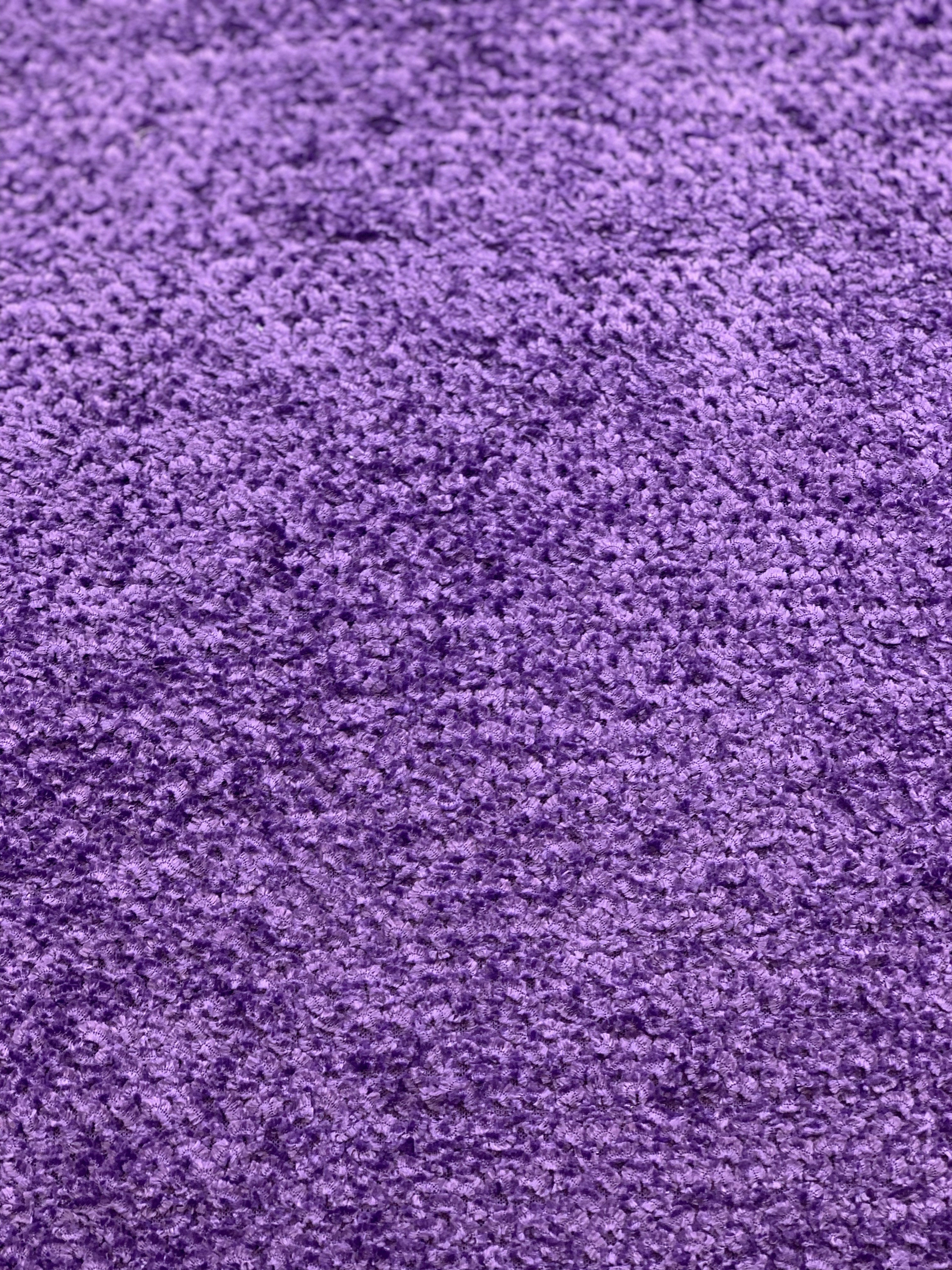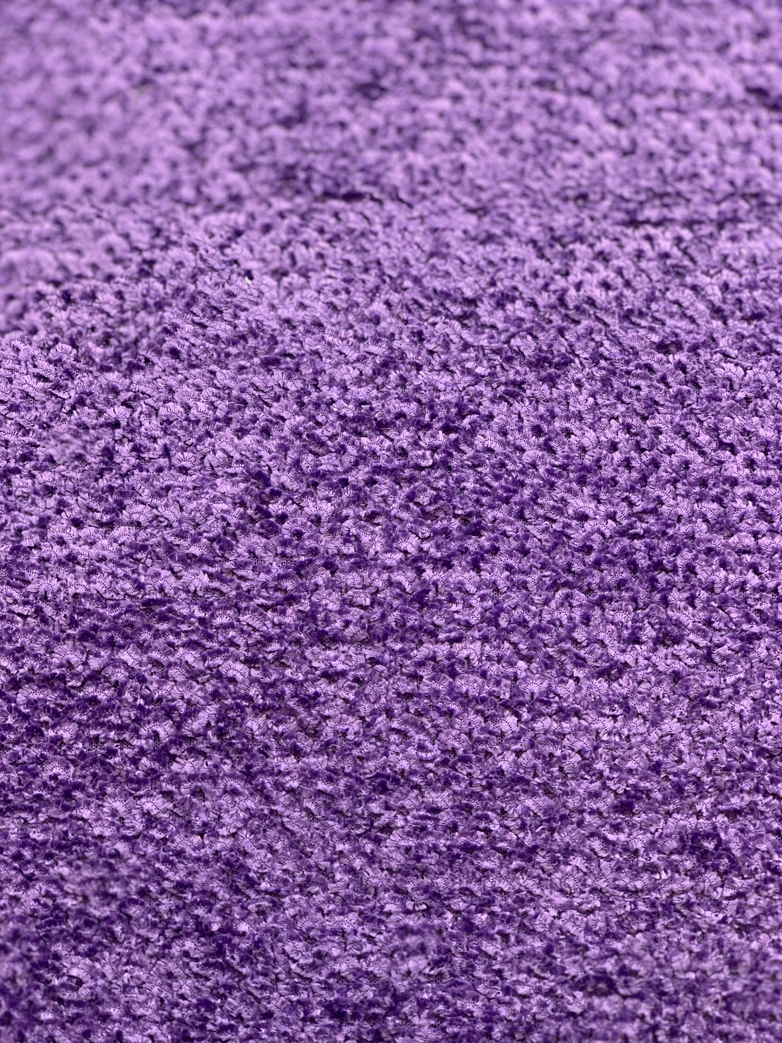 Tyget är stickat av ett garn som är tvinnats så att små öglor uppstår och skapar struktur i tyget.