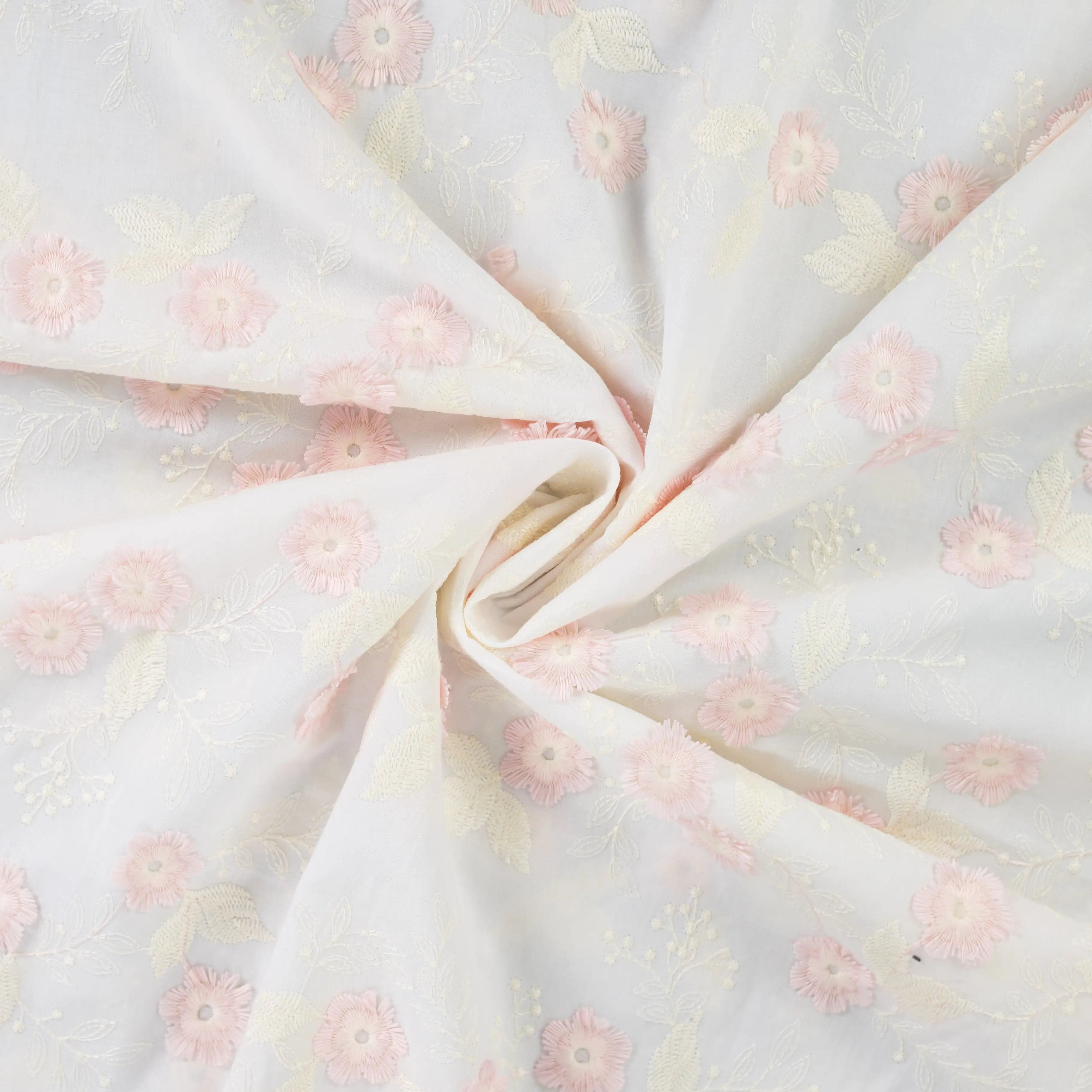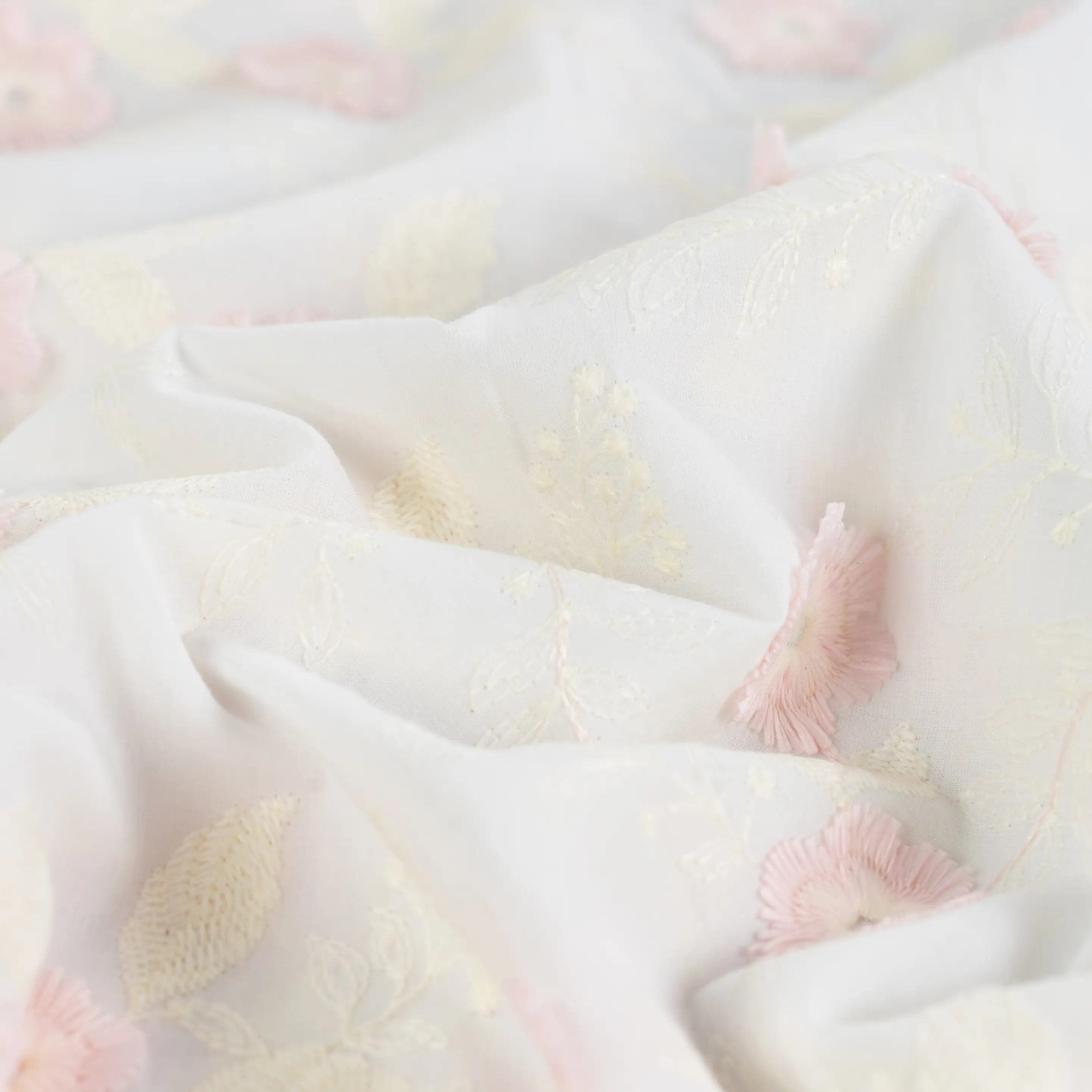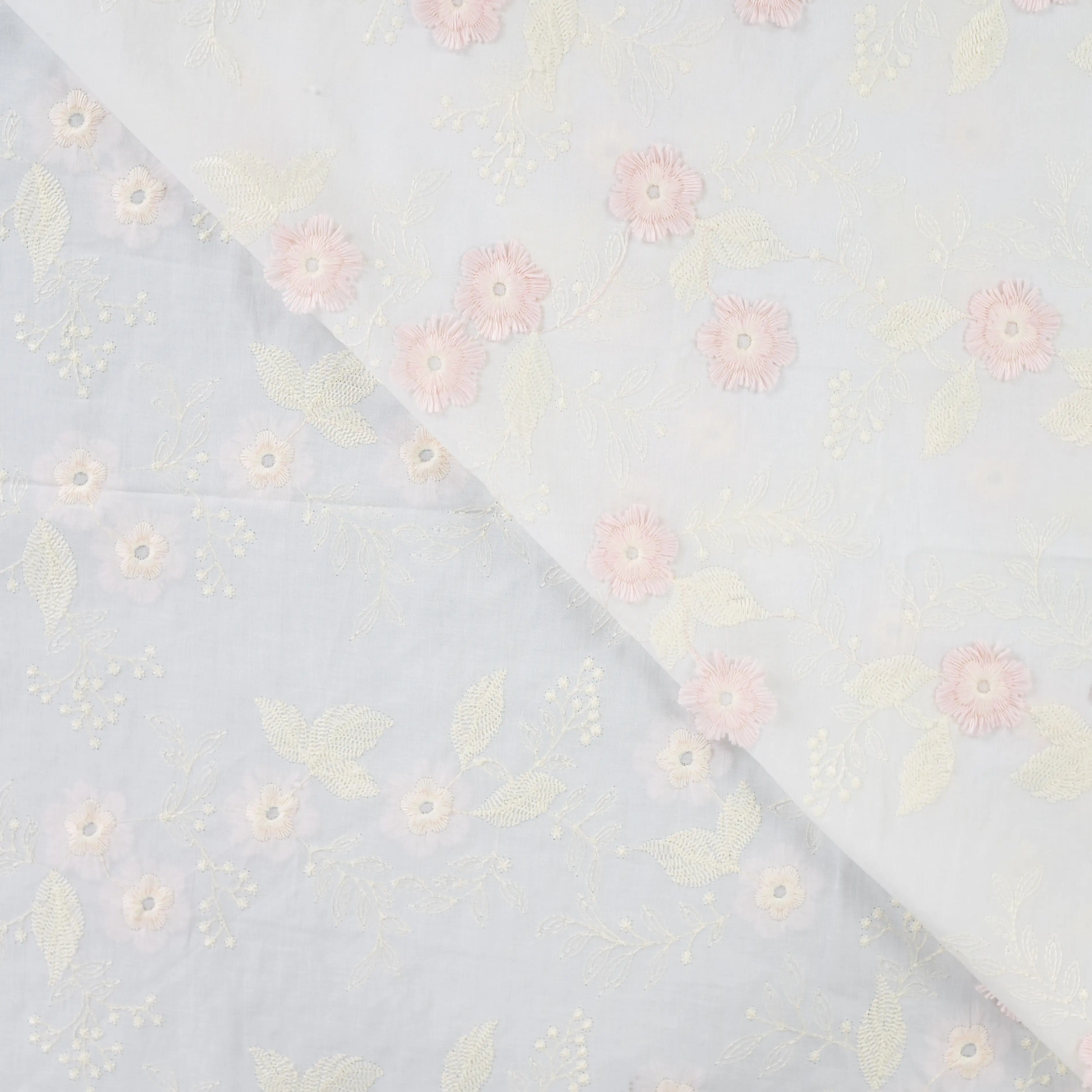 Embroidered flowers, pink - Cotton embroidery