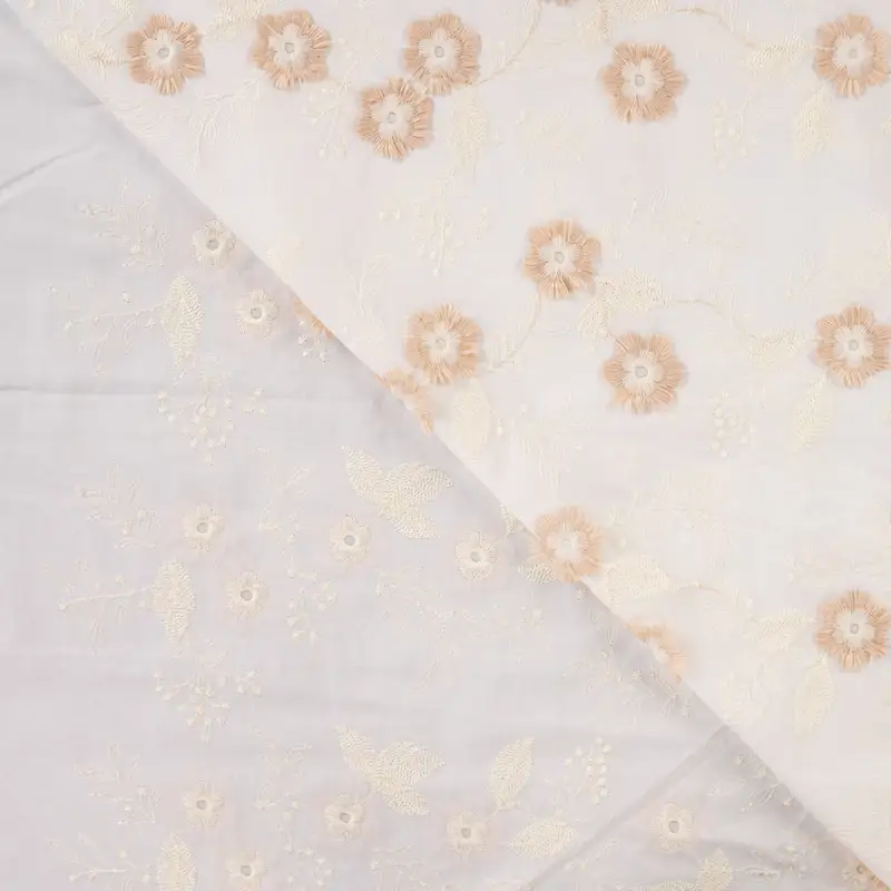 Embroidered flowers, sand - Cotton embroidery