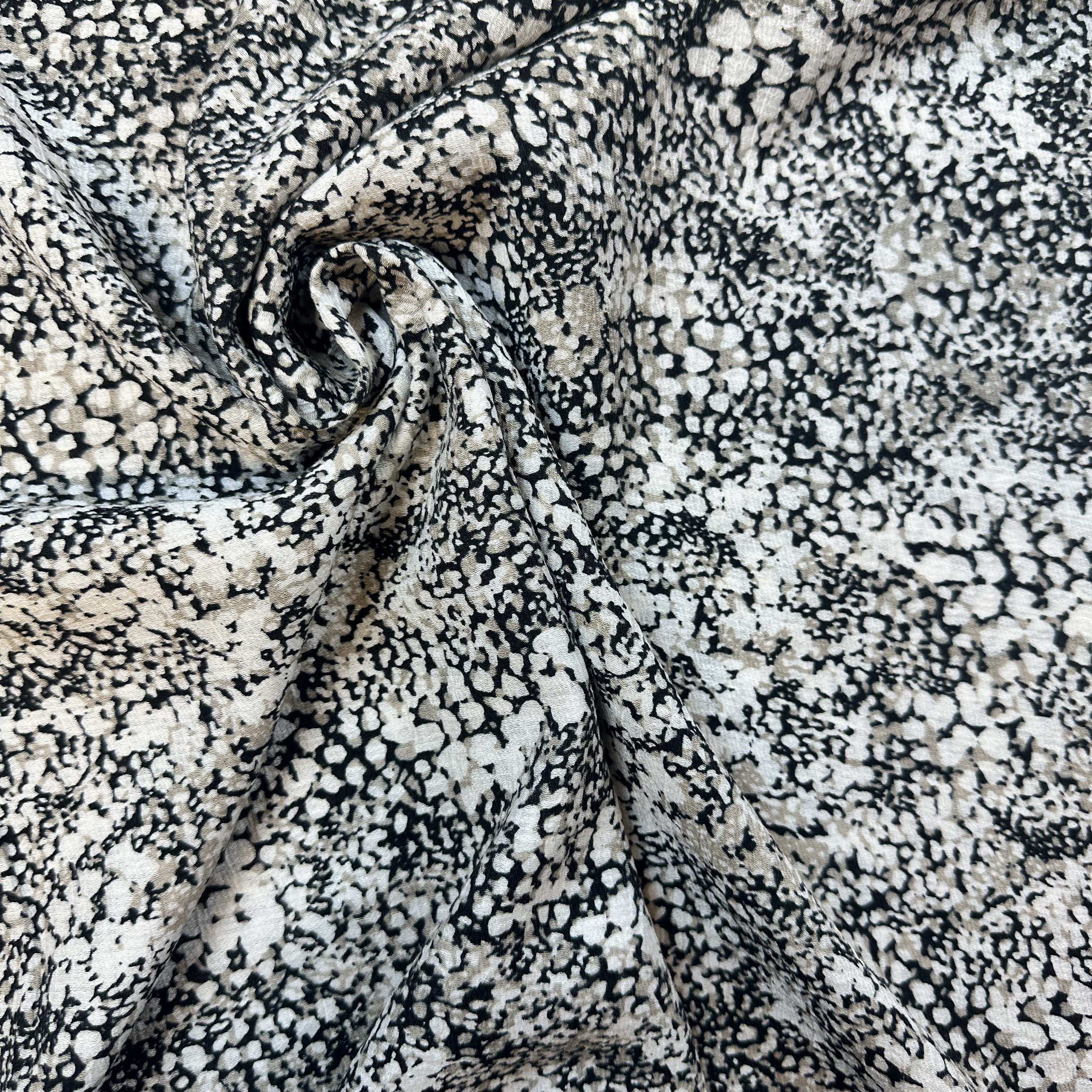 Ett tyg med tungt och fint fall och en lite skrynklig struktur och en tun guldrand för en lyxig känsla.Passar fint att sy blusar, klänningar och lätta kjolar i.