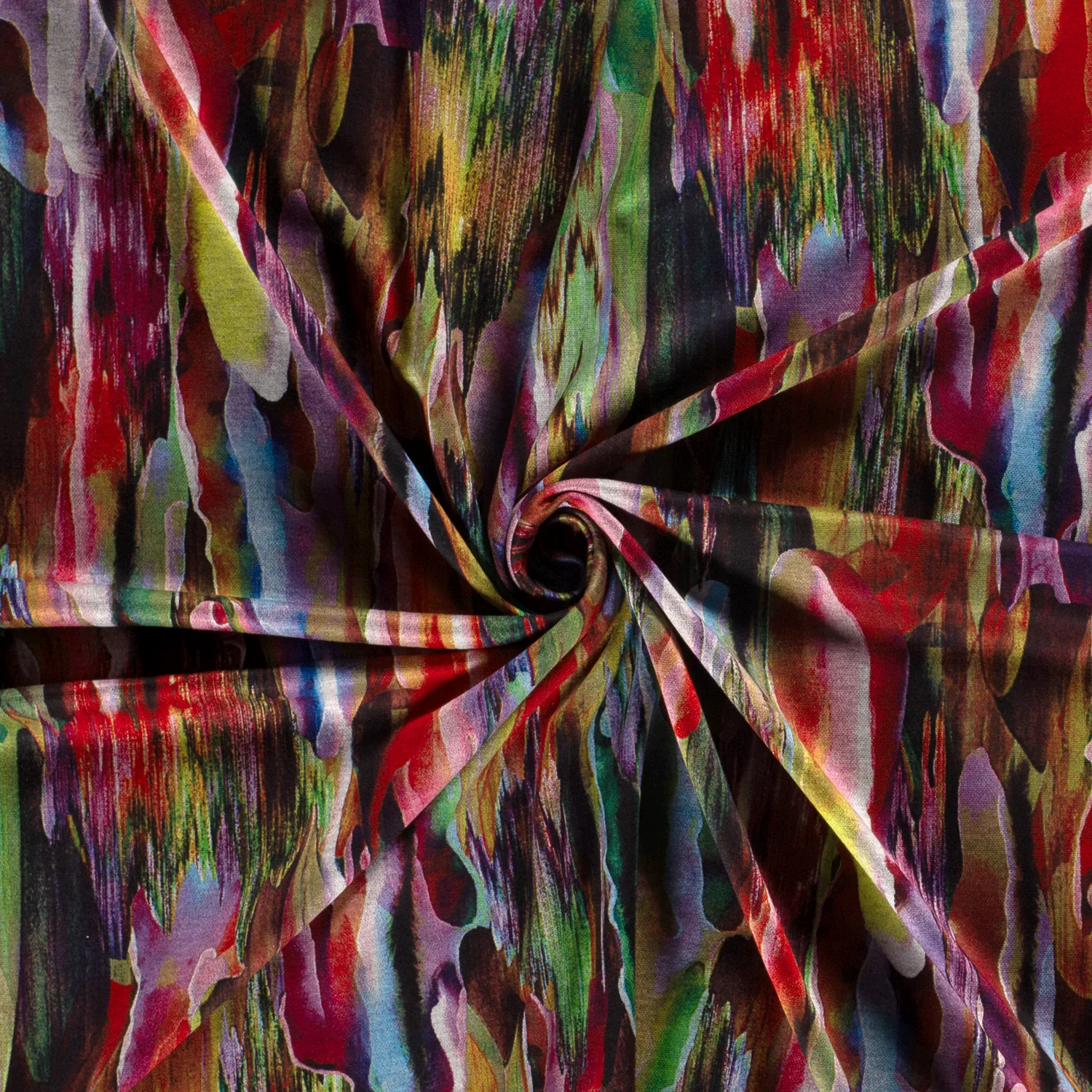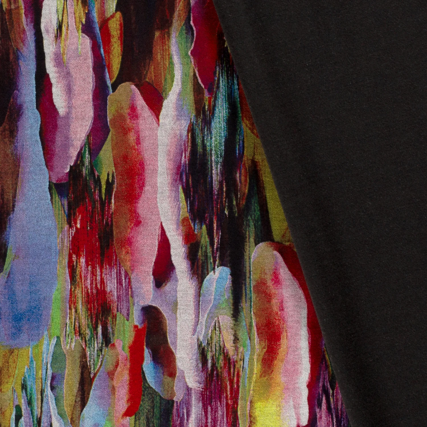 Ett dubbelstickat och lite tyngre och stadigare trikåtyg med ett fint fall och med en svart baksida som kan ge fin effekt vid tex. uppvik, hätta.