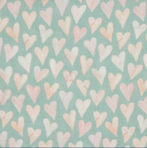 Digitaltryckt Muslin tyg - Hjärtan, mint