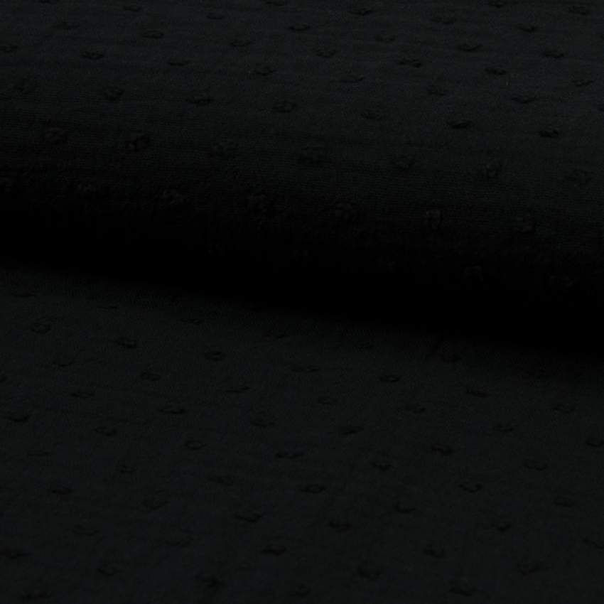 Mjukt och följsamt vävt krinklat bomullstyg med vävda prickar.