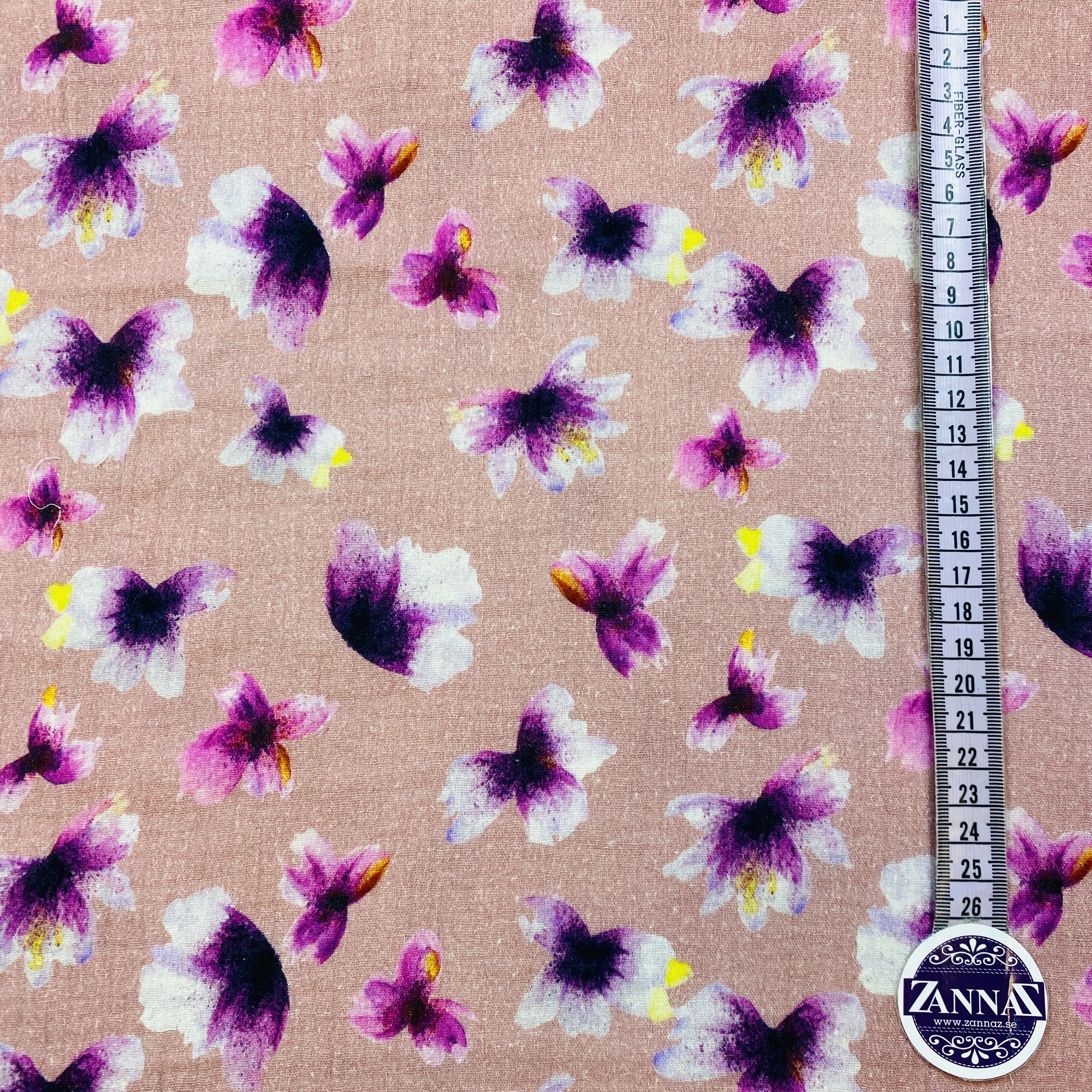 Thea, rosa - Digitaltryckt Muslin tyg
