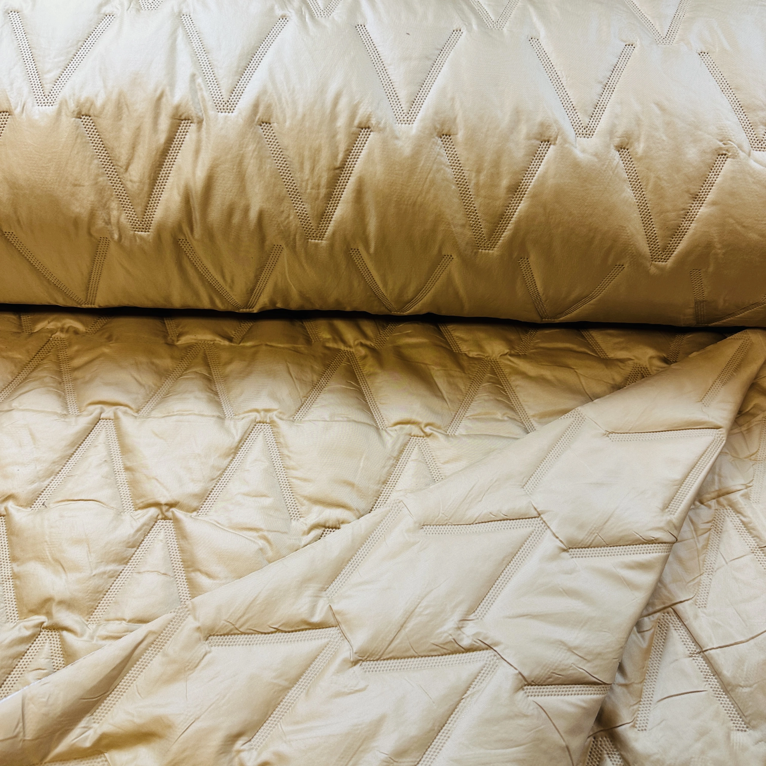 Tyget är vadderat med ett värmande vaddlager i mellan.