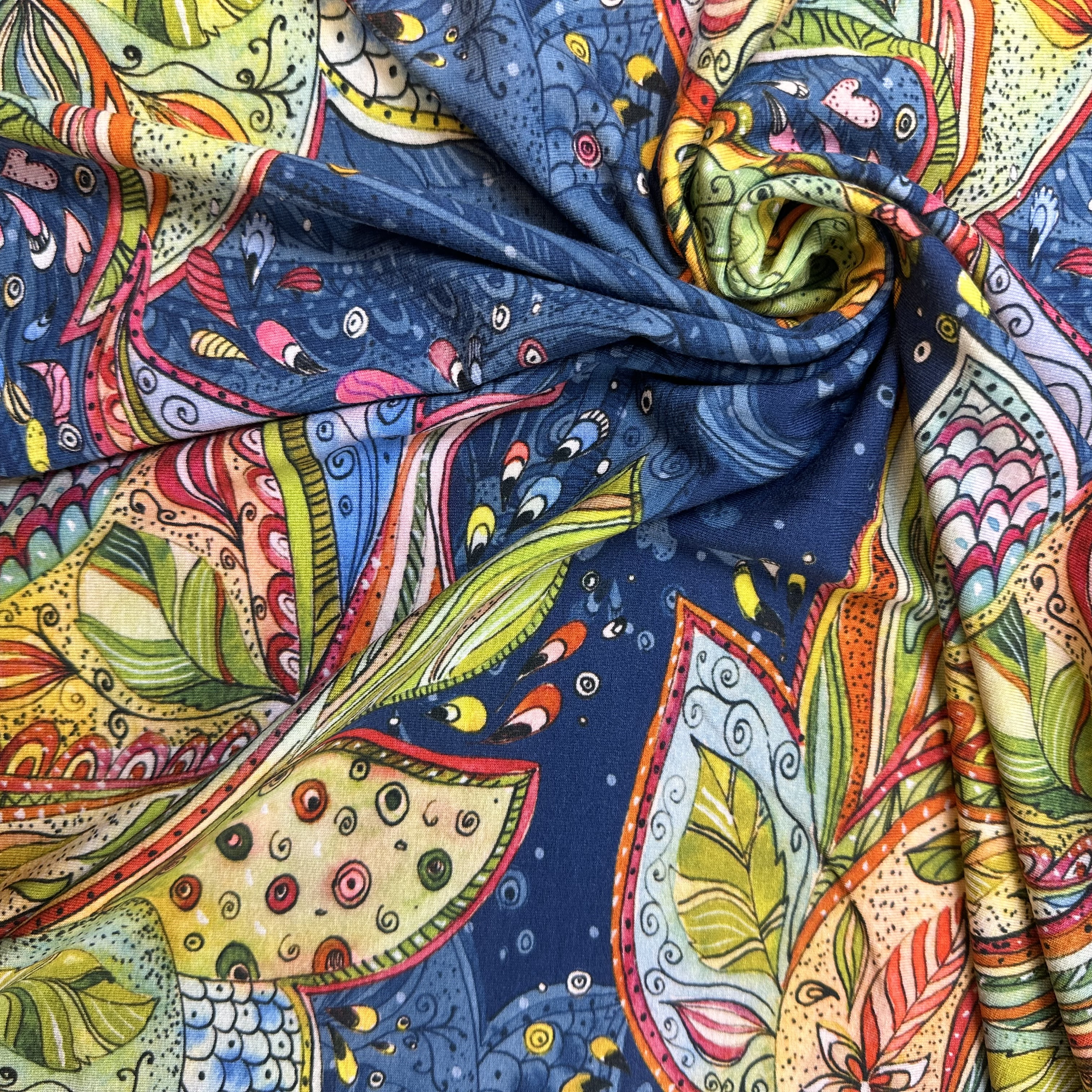 Mjuk mönstrad trikå tyg i viskos.