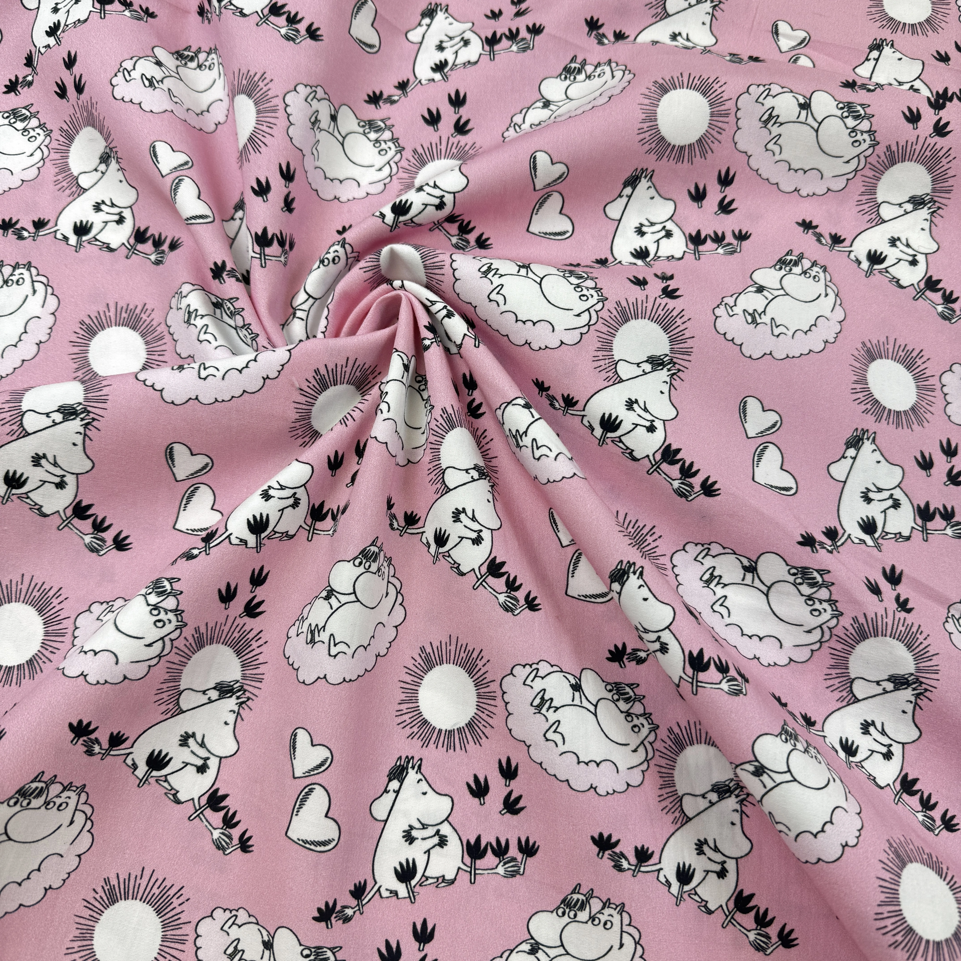 Upptäck ett ljuvligt tyg med motiv från Mumindalen, inspirerat av de klassiska illustrationerna av Tove Jansson. Här möter vi bland annat Mumintrollet, Muminmamman och deras vänner i lekfulla och charmiga motiv som för tankarna till de tidlösa berättelserna om äventyr, vänskap och trygghet i Mumindalen.
