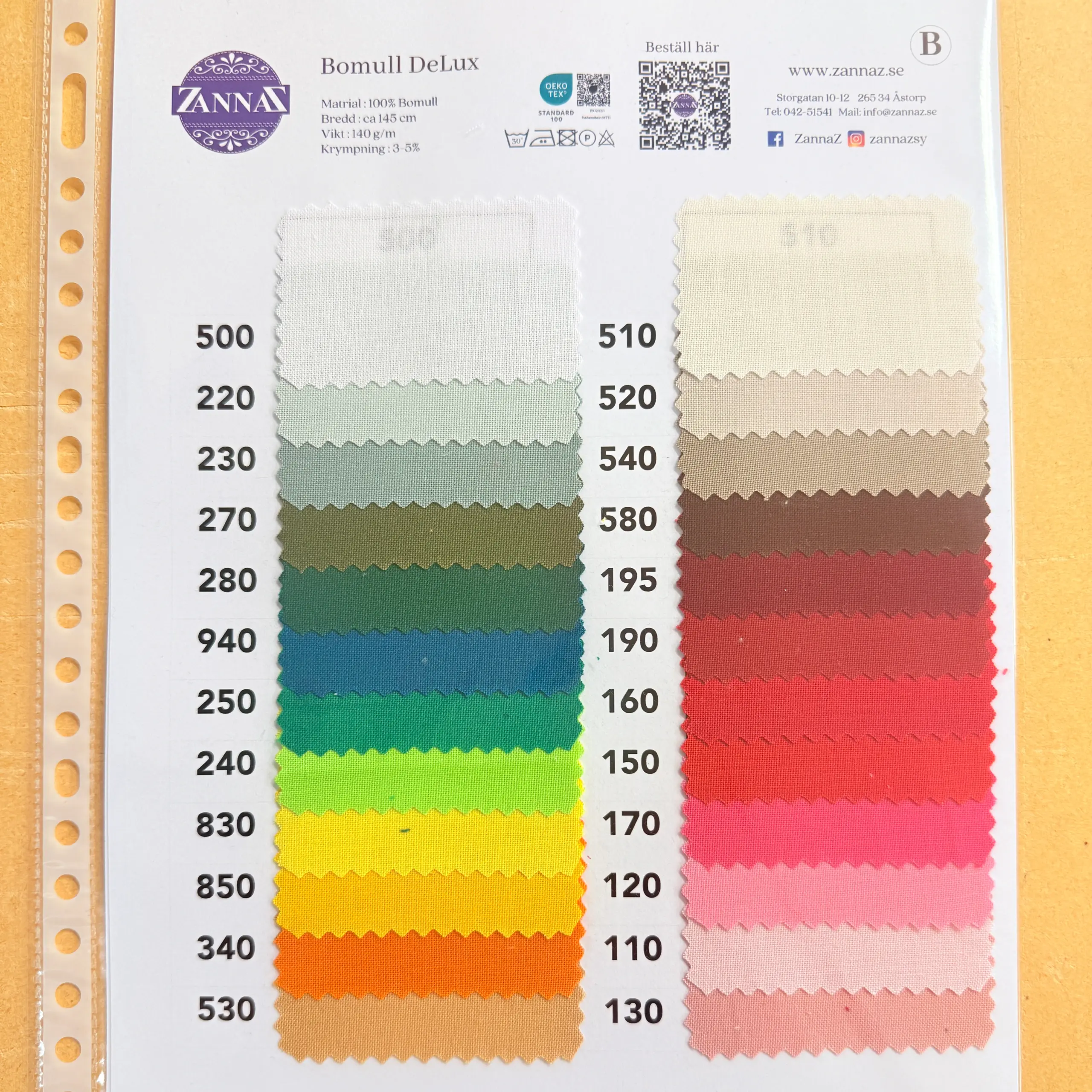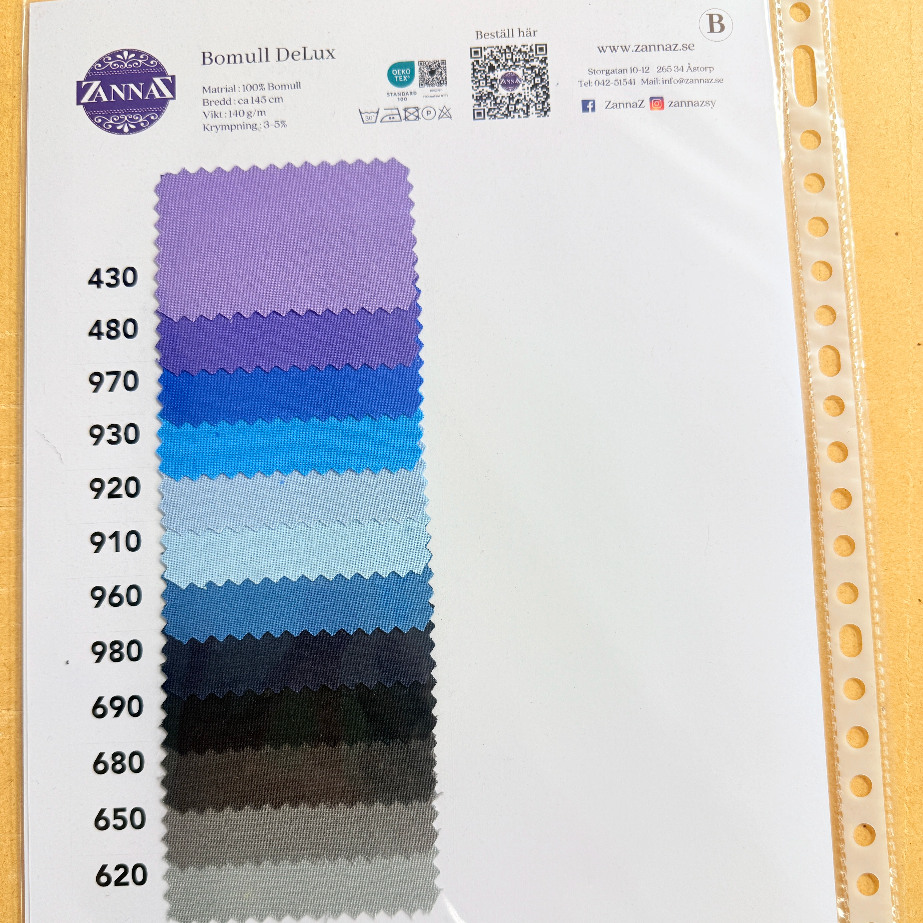 Nu blir det enklare än någonsin att matcha! Med vår färgkarta får du en tydlig överblick av våra 36 omtyckta nyanser – perfekt när du vill se hur färgerna ser ut i verkligheten och hitta den rätta tonen till dina tyger där hemma.