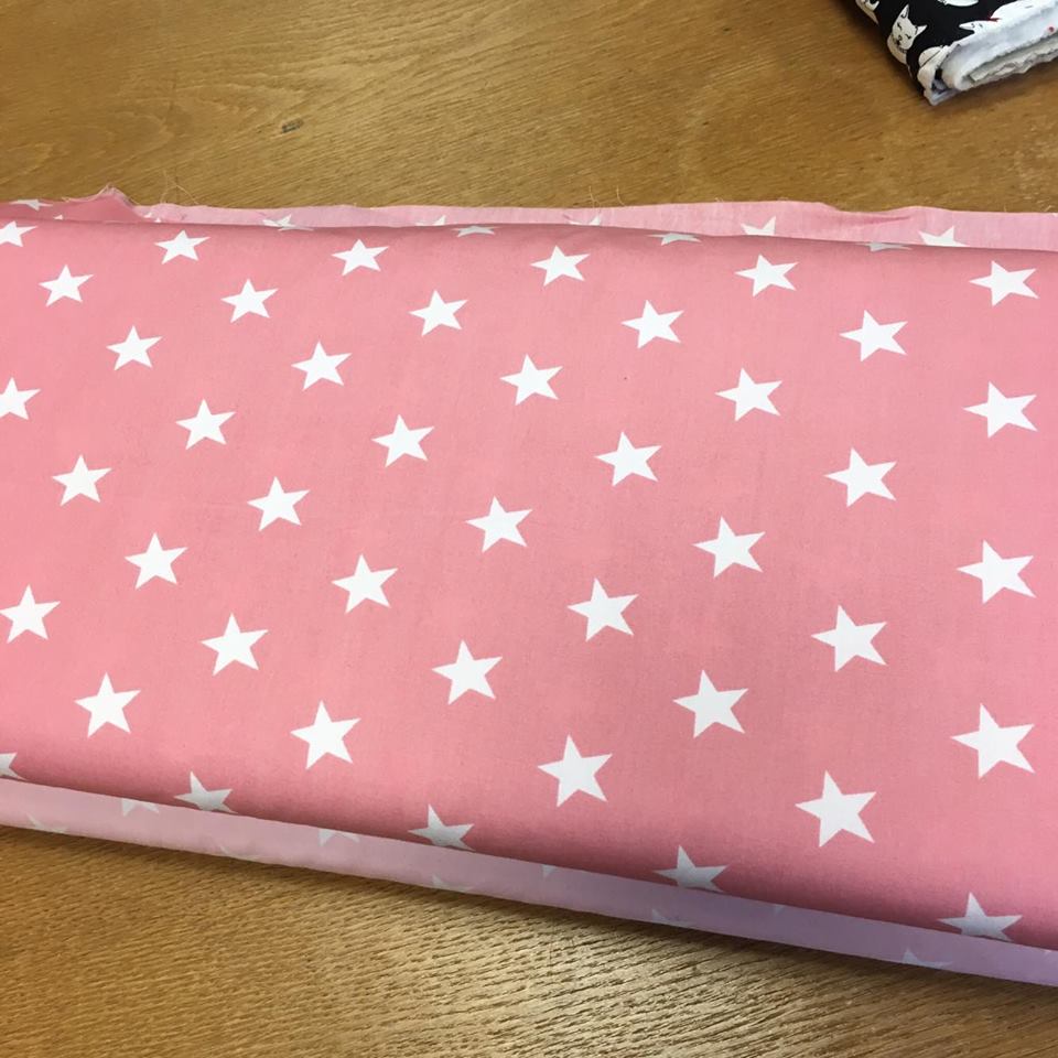 Mörkrosa Stjärnor Bomullstyg 16,9kr - pris avser per dm.