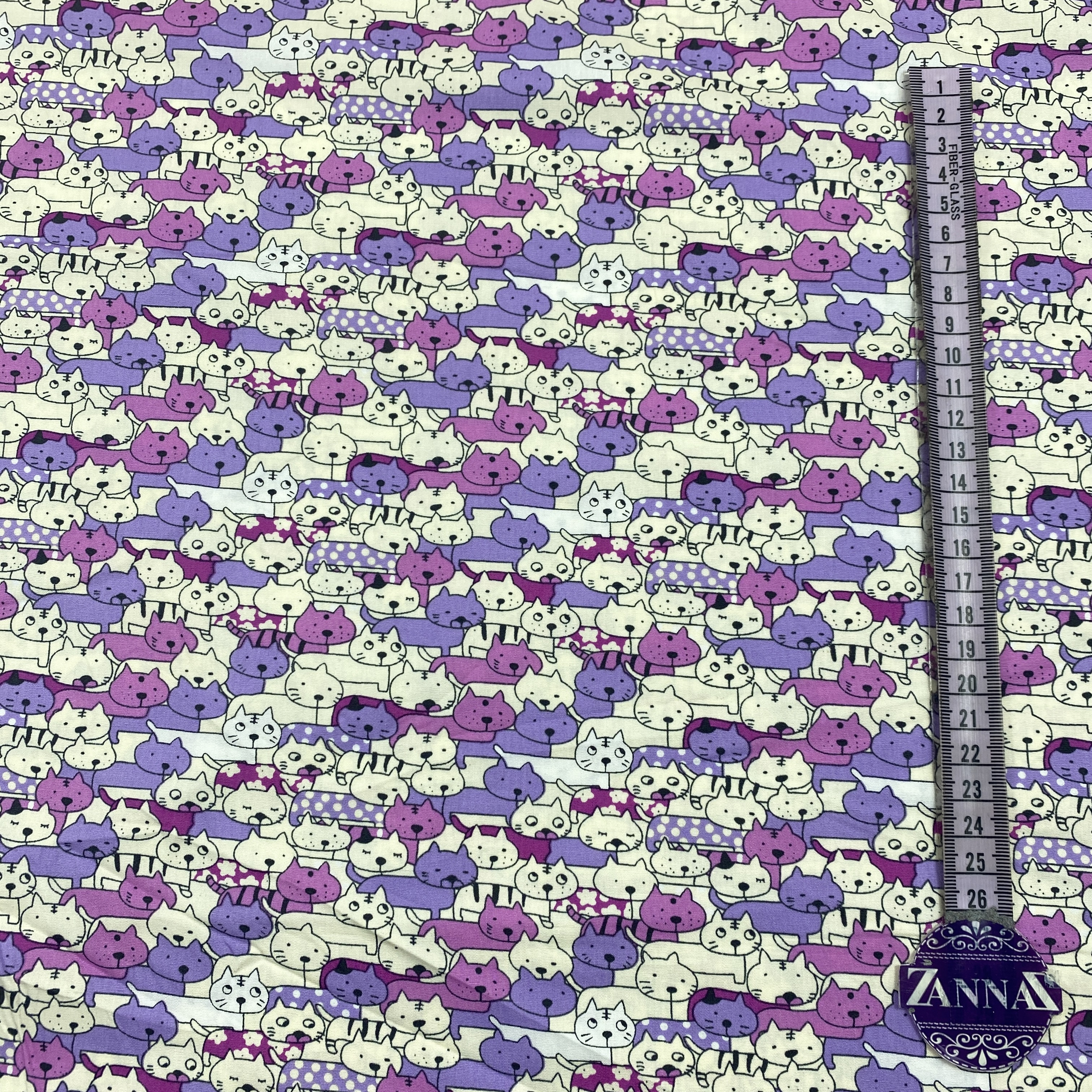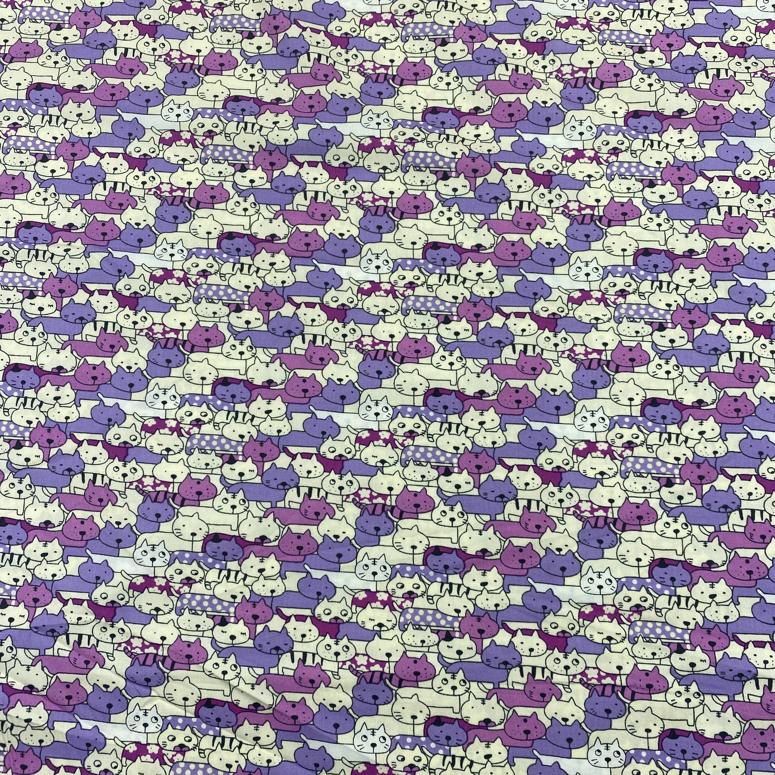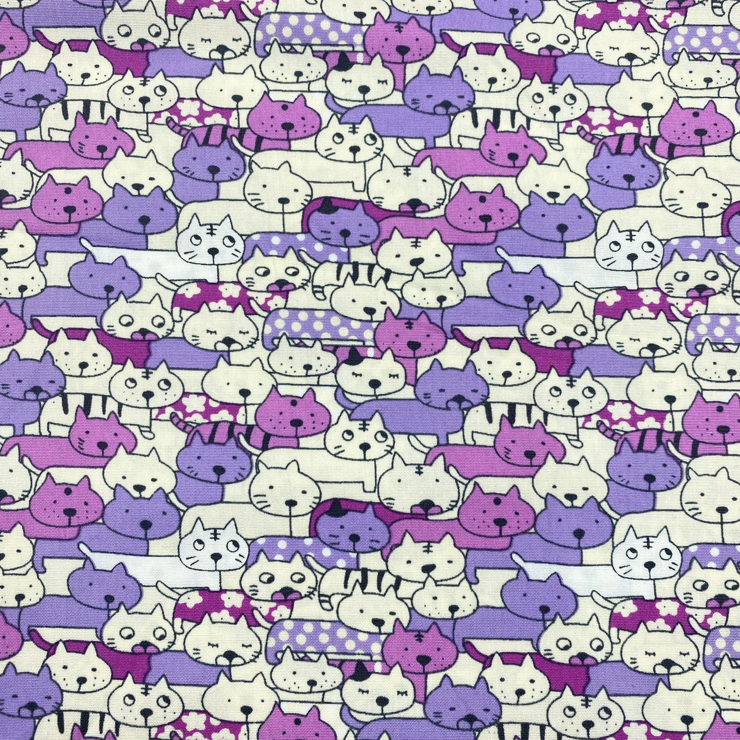 Bomullstyg ,Vävt - Kattiga Katter Lila