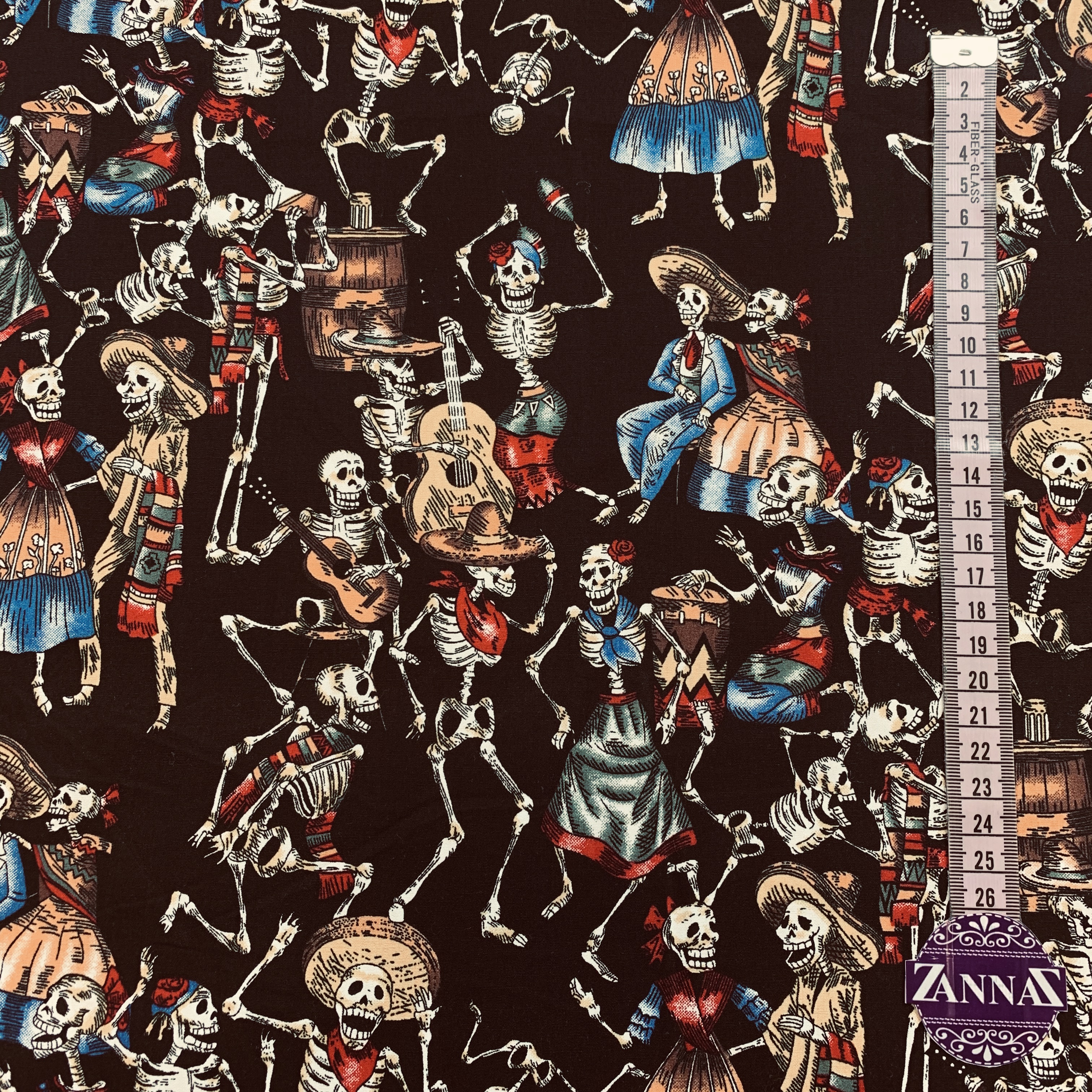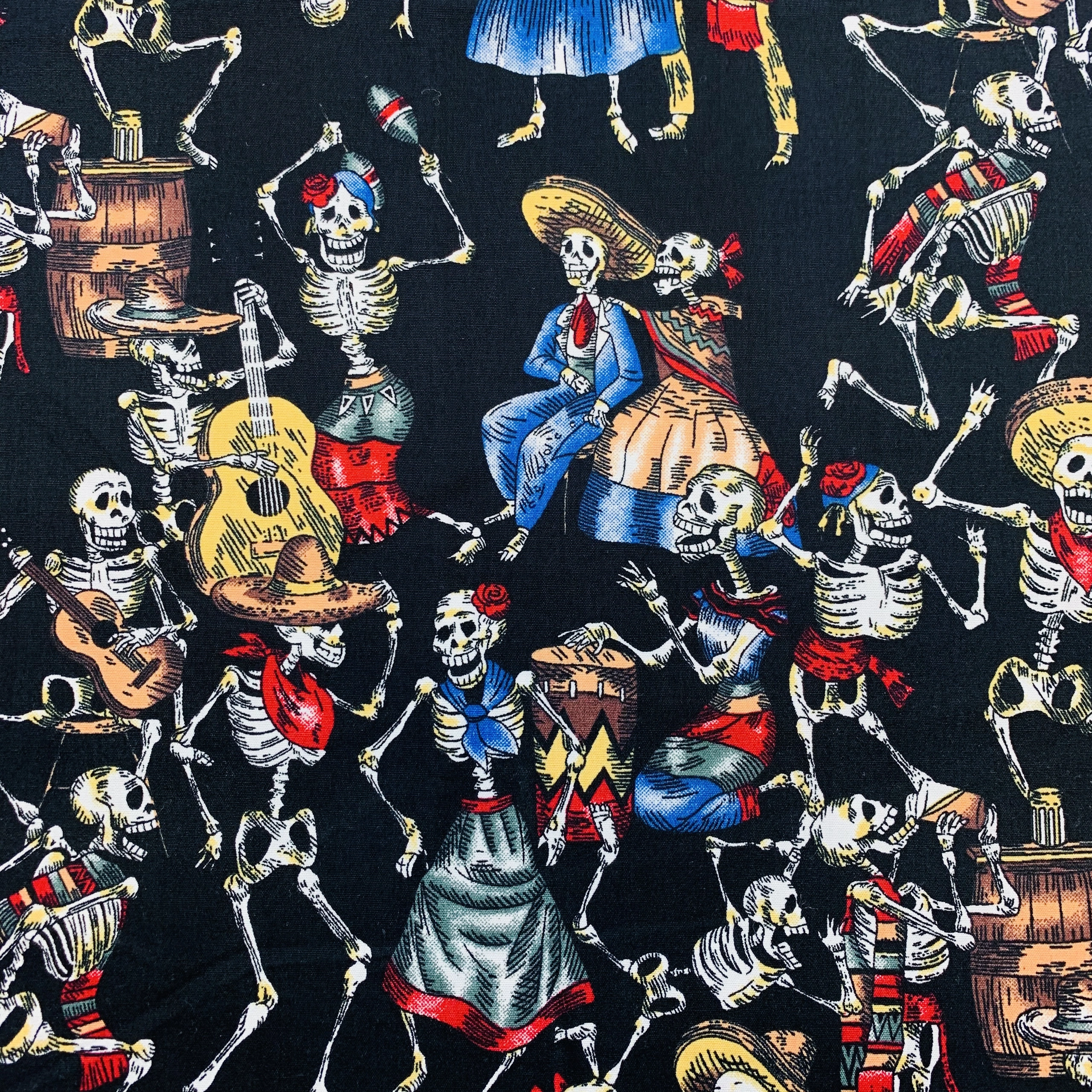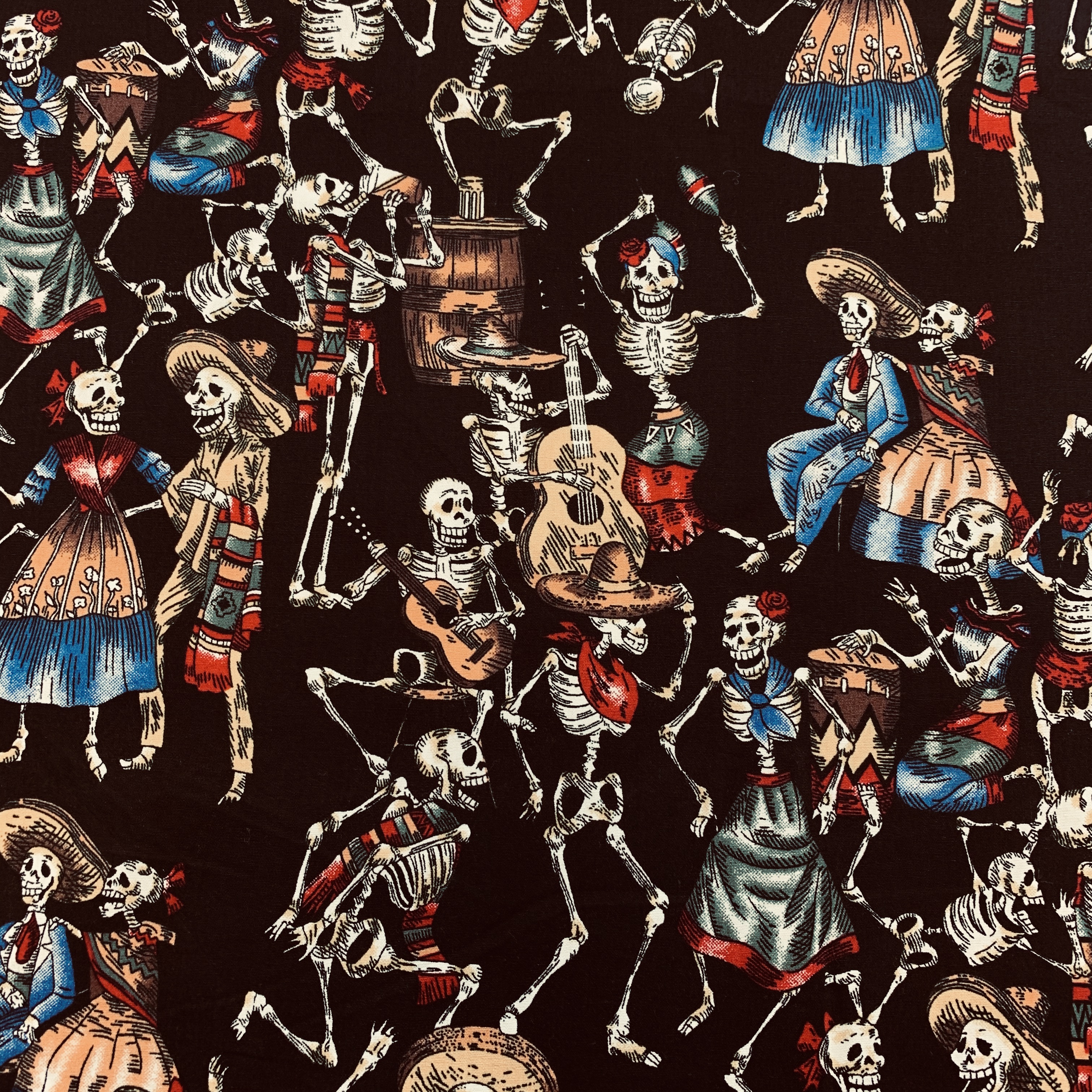 Dansande skelett, svart, cinco de mayo- Bomulls tyg
