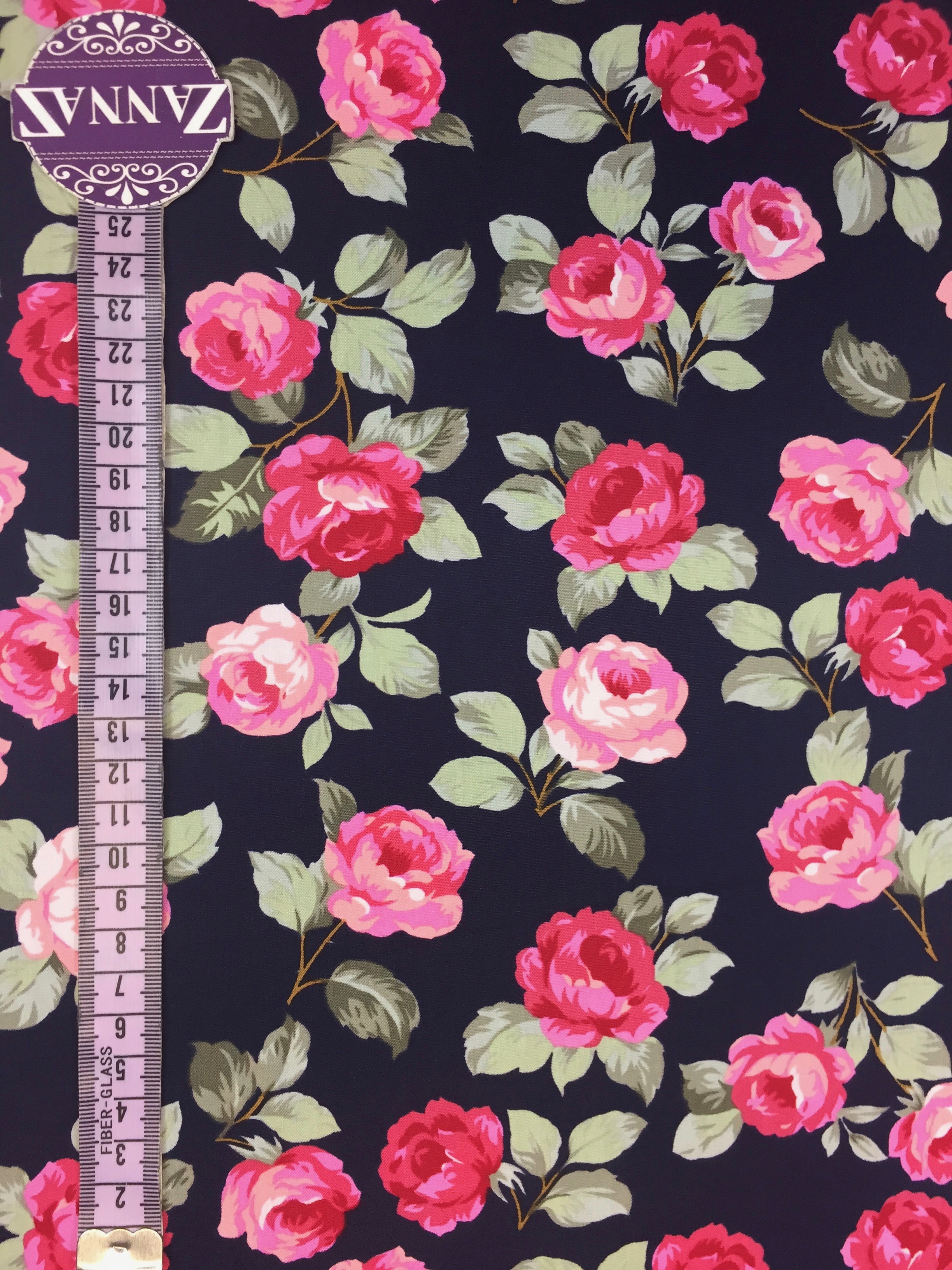 100% bomull 110 - 114 cm bredd Vikt ca: 180g/m Pris avser per 1 dm.