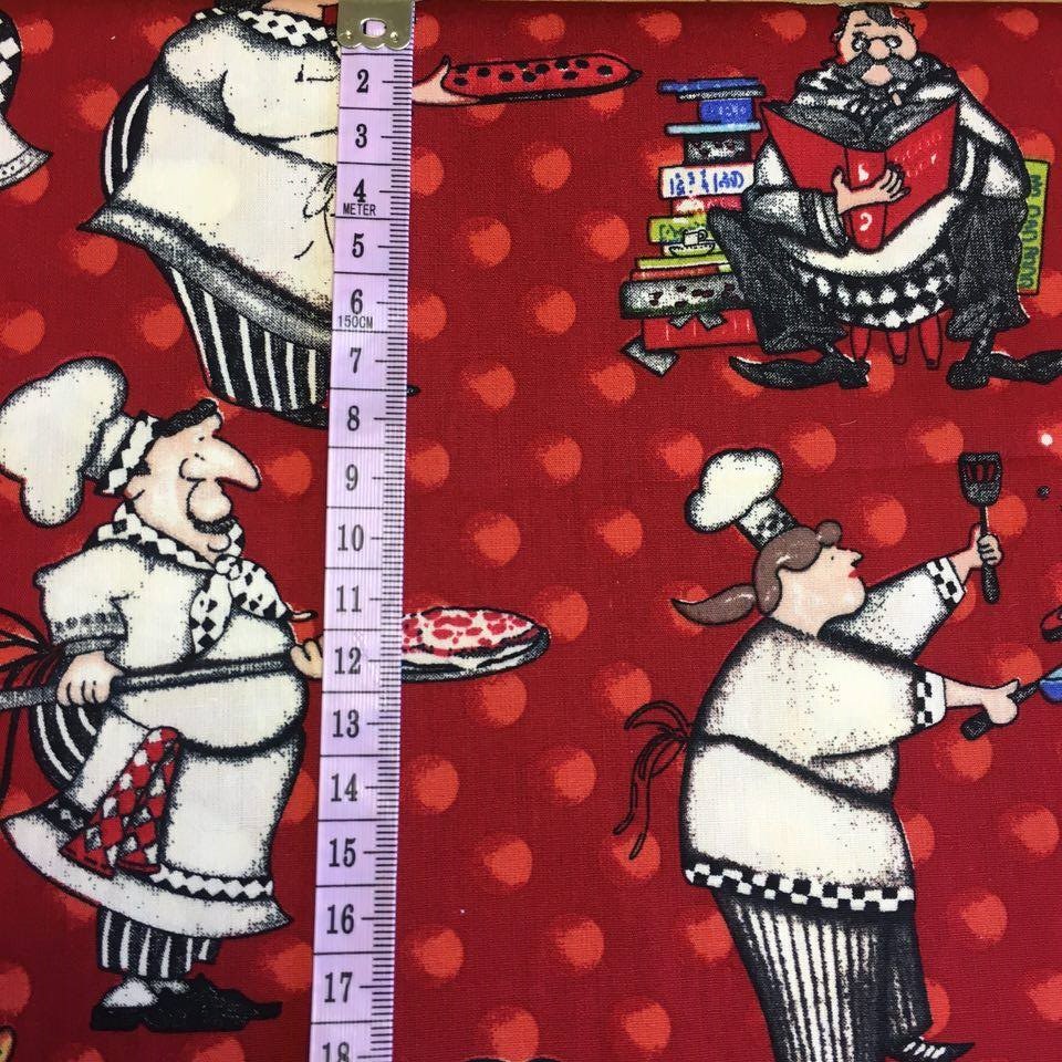 Pizza bagare på röd botten.