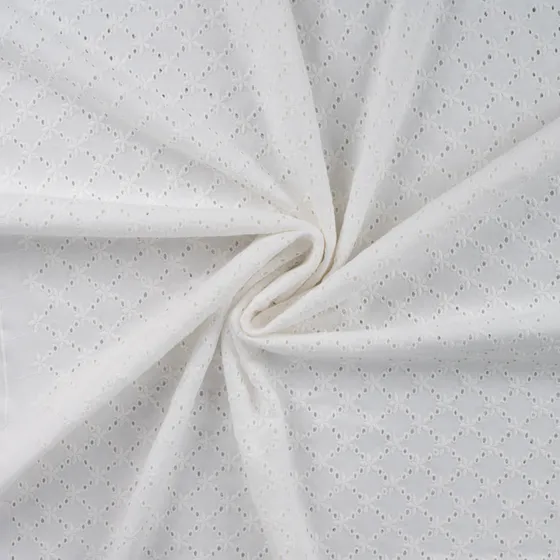 Mjukt trikåtyg med broderat mönster.