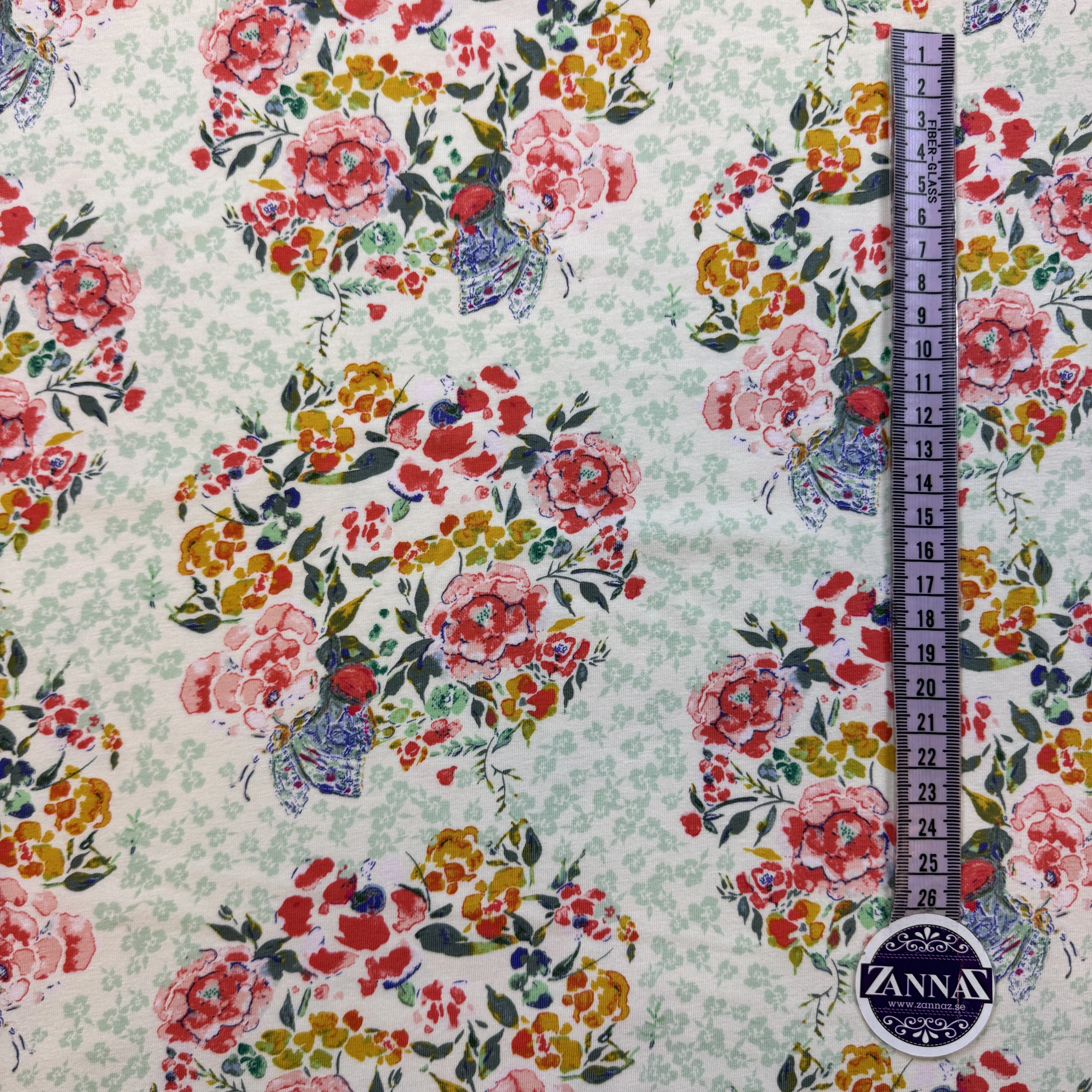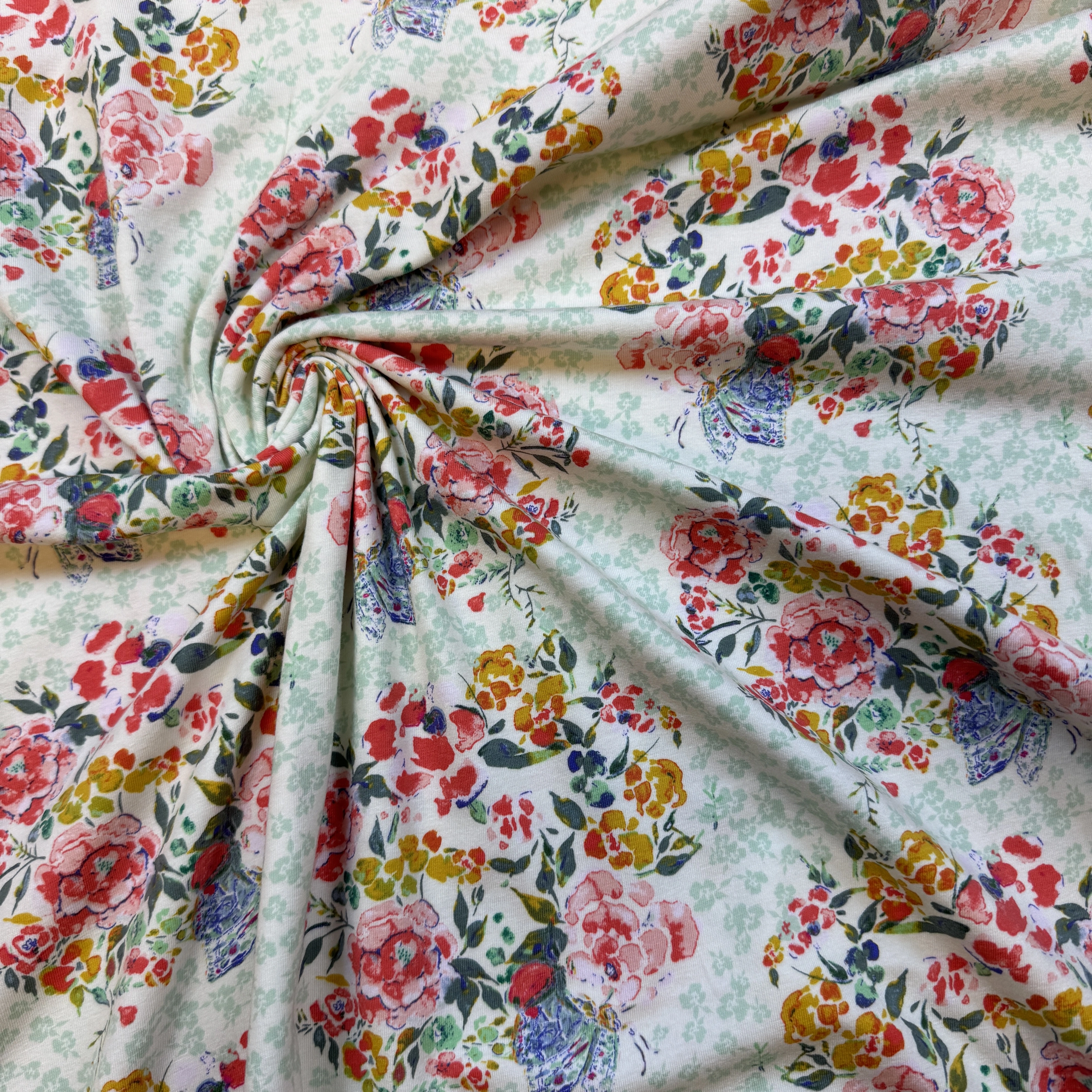 Digital tryckt trikåtyg med motiv.