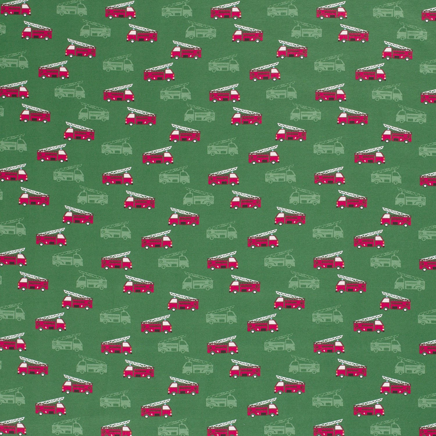 Fire trucks, green - Jersey fabric