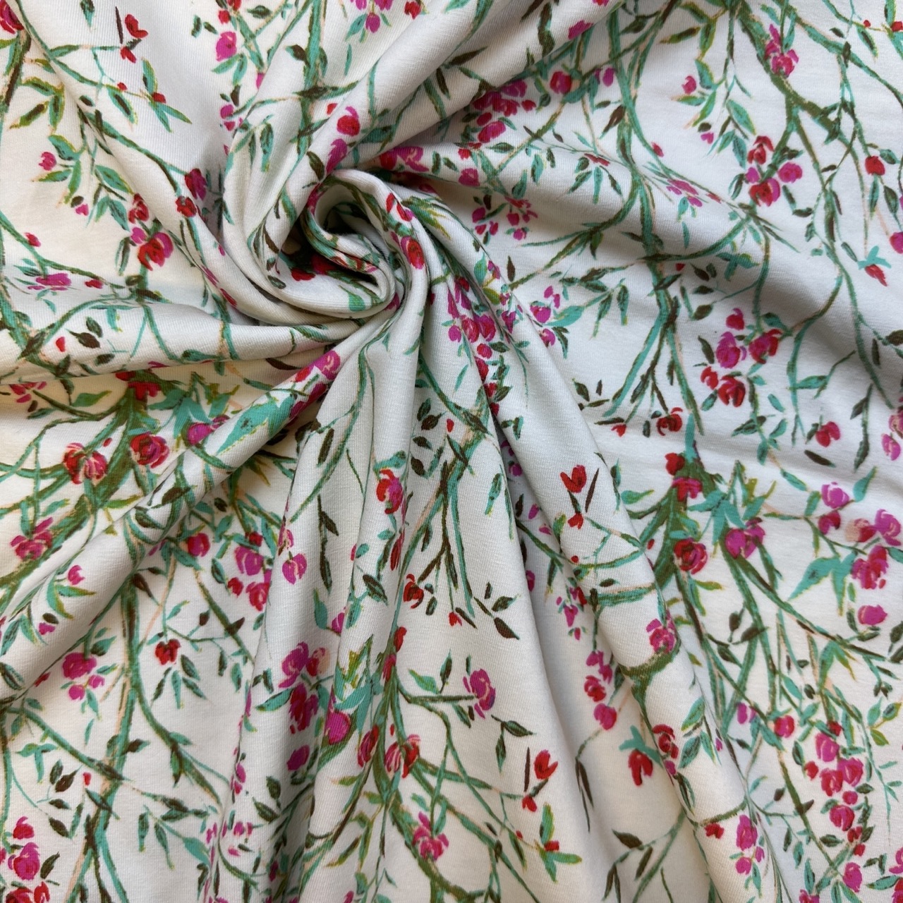 Digital tryckt trikåtyg med motiv.