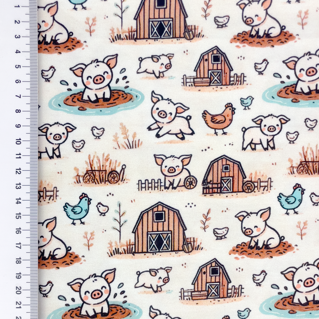 Digital tryckt trikåtyg med motiv.