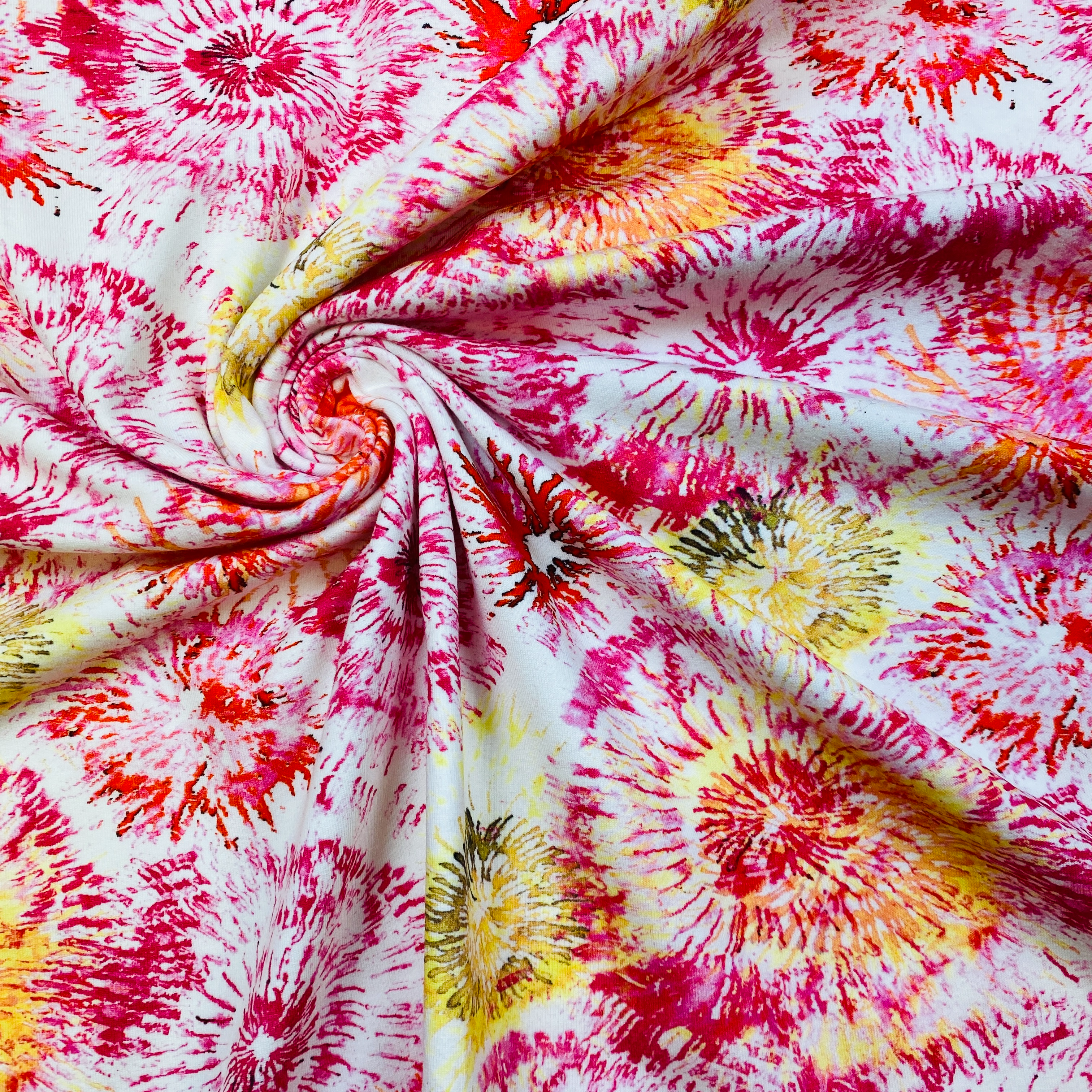 Digital tryckt trikåtyg med motiv.
