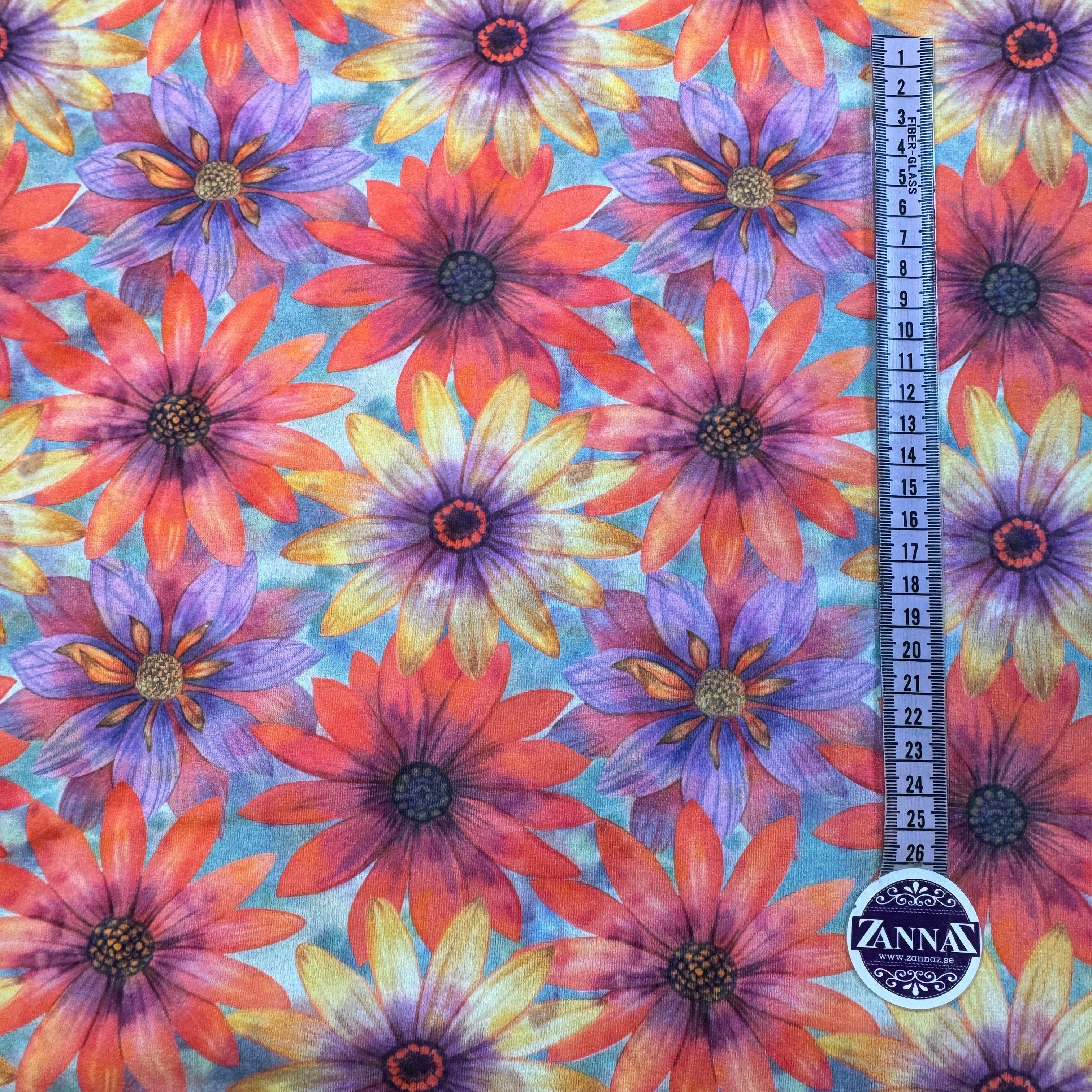 Digital tryckt trikåtyg med motiv.
