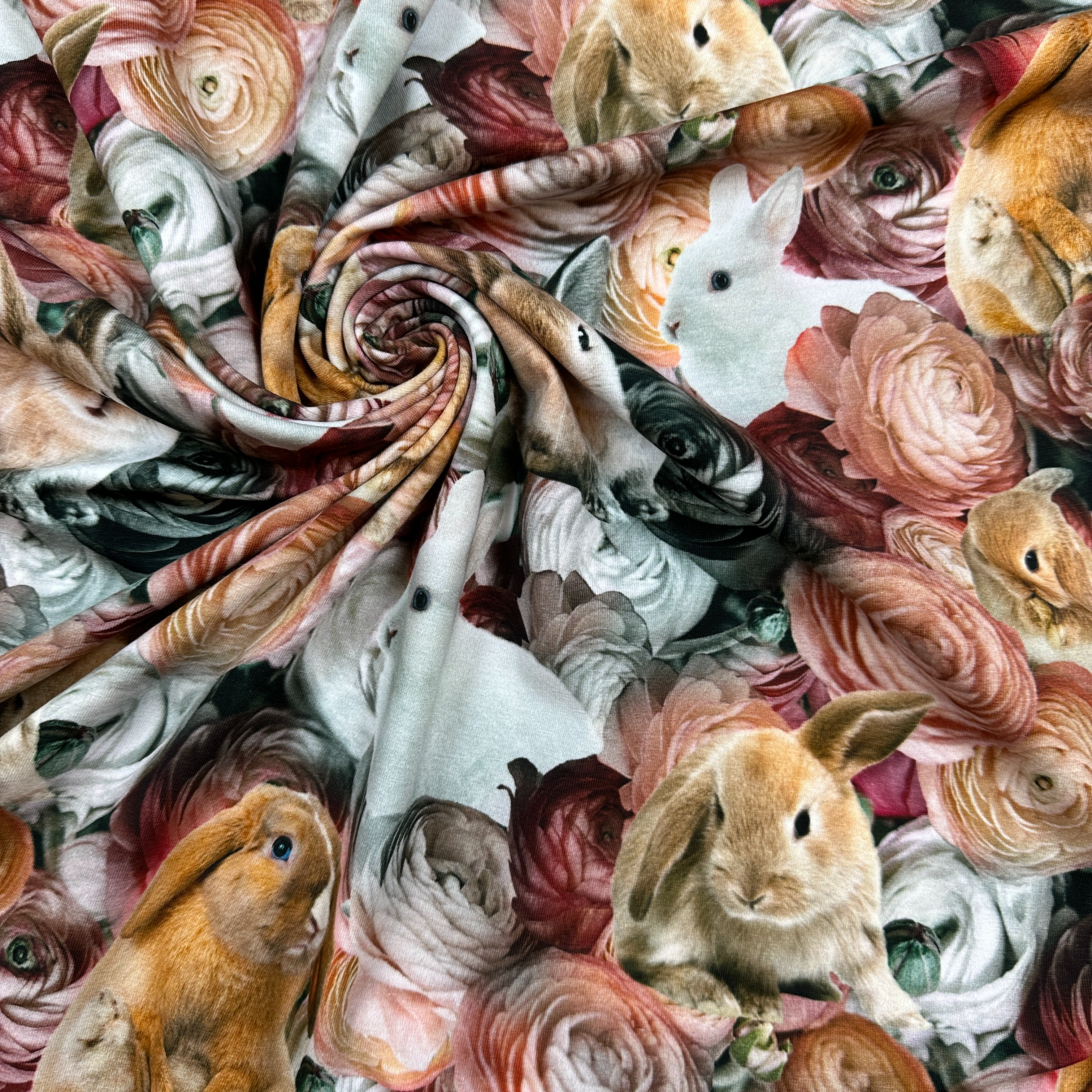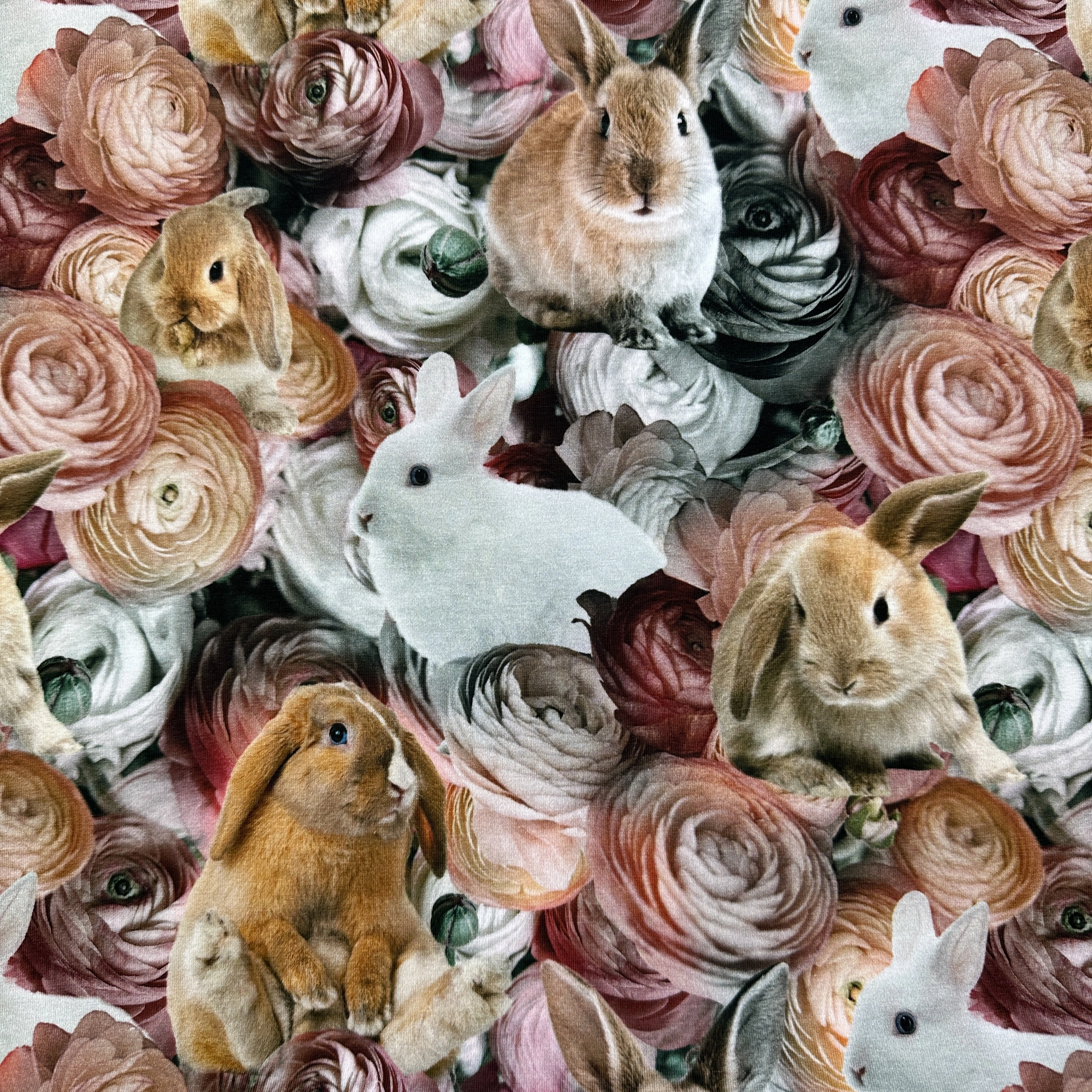Rosor och kaniner - Trikåtyg