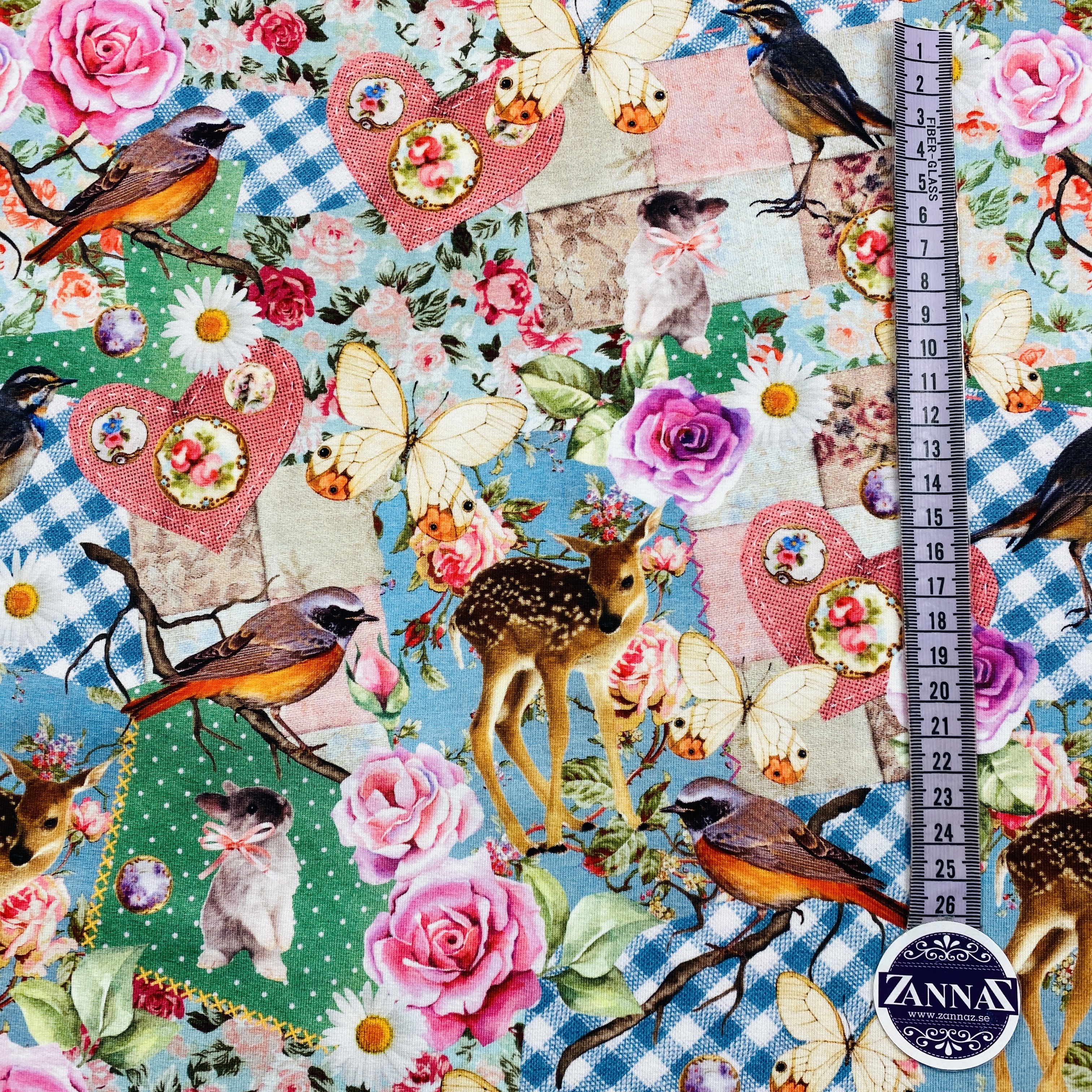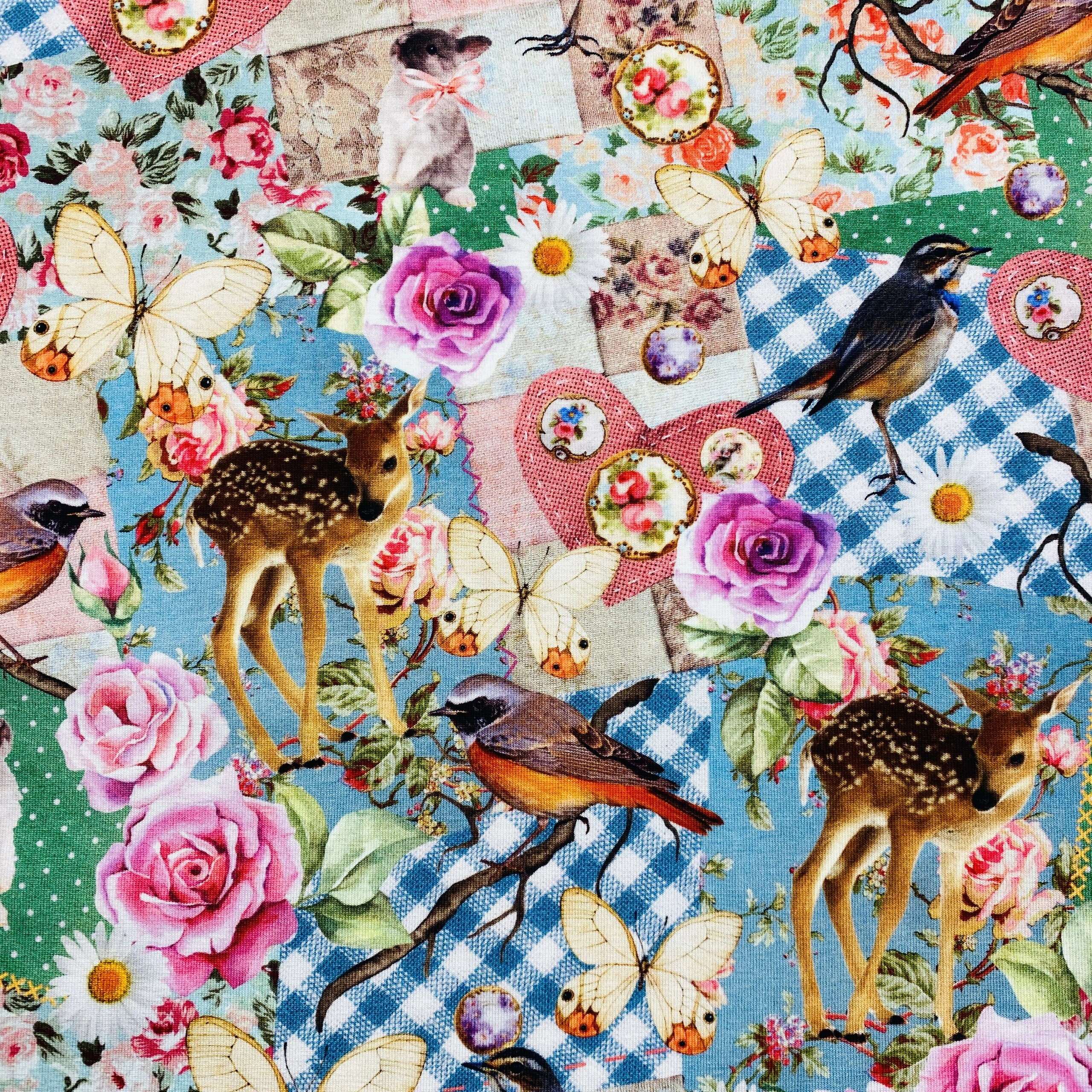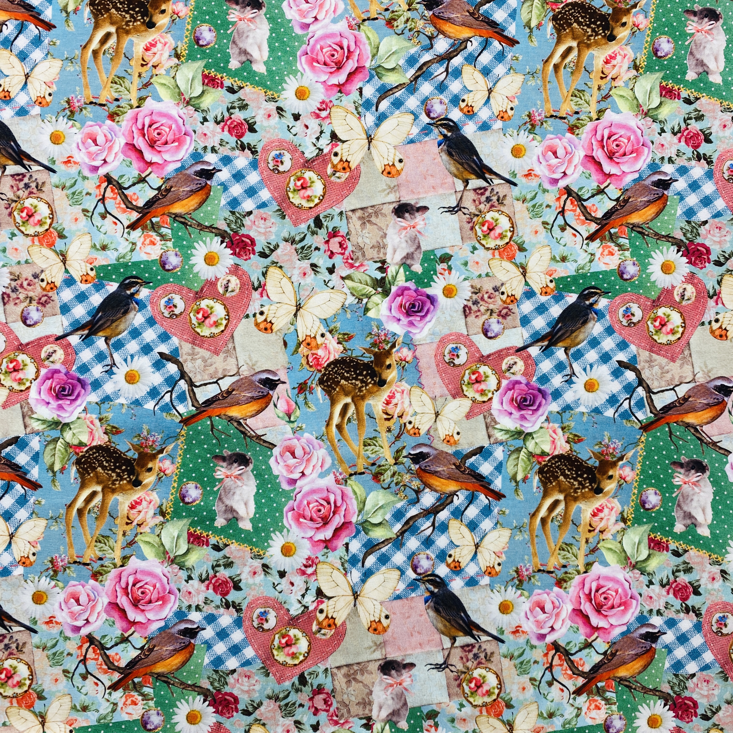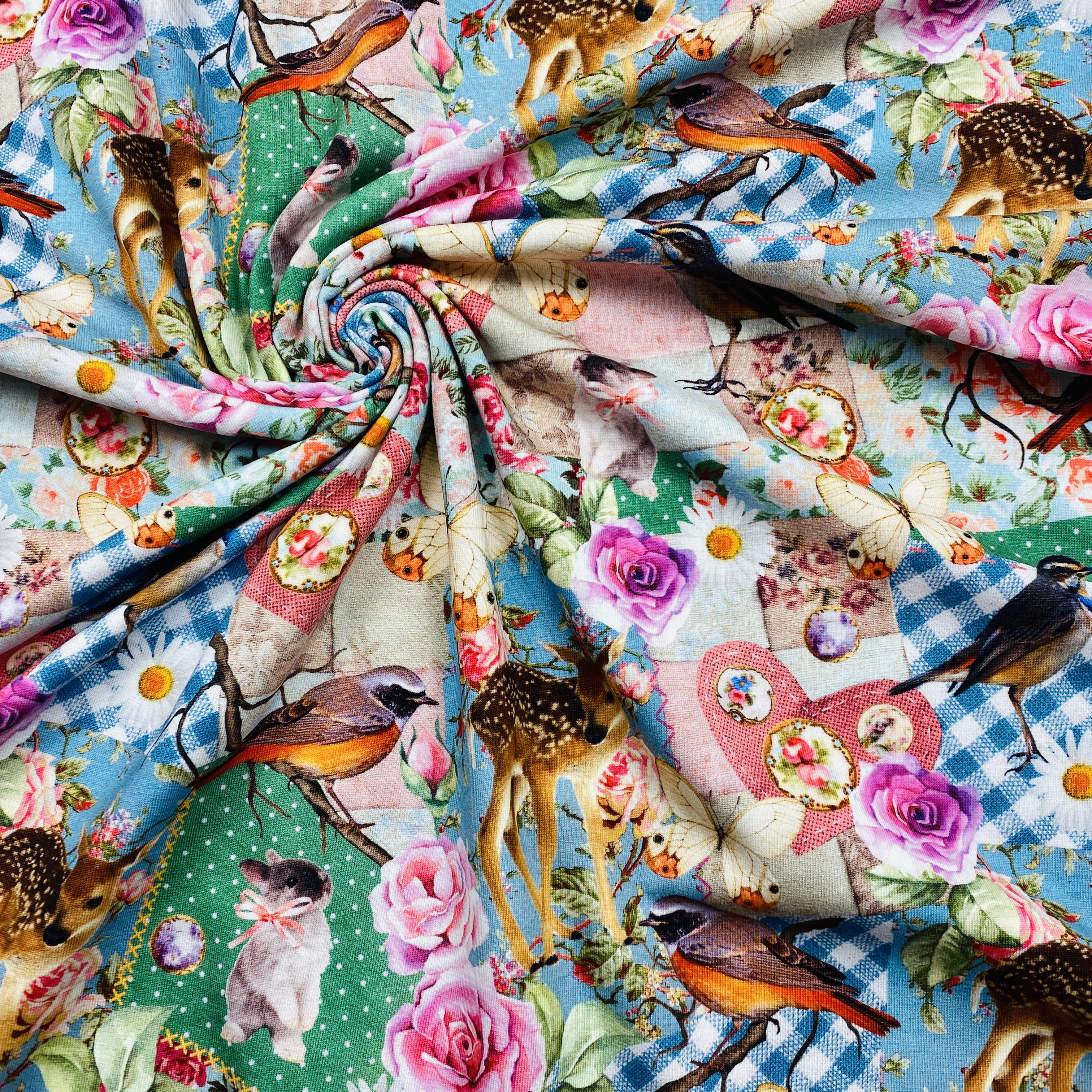 Digital tryckt trikåtyg med motiv.