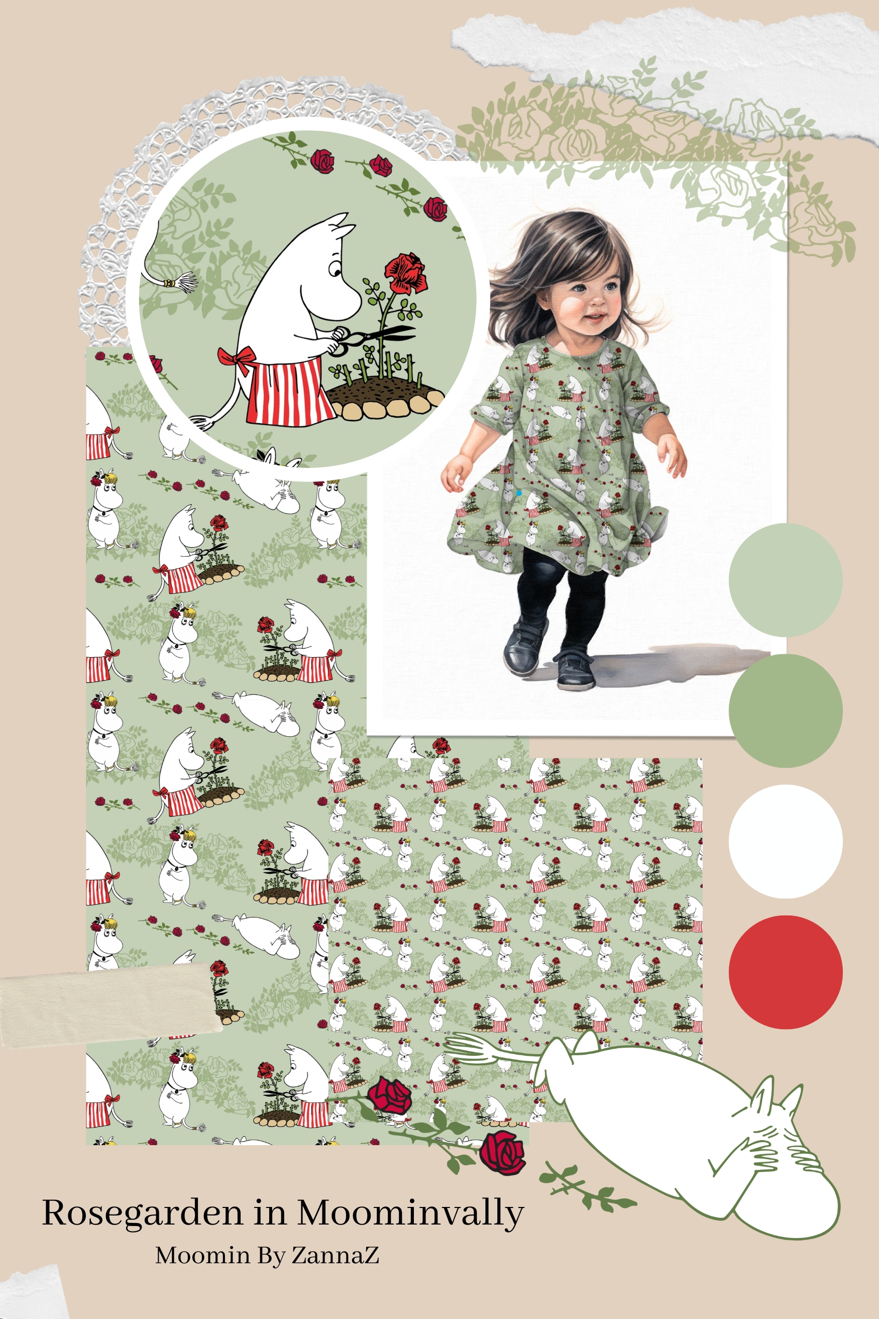 Rosenträdgård, grön - Moomin By ZannaZ