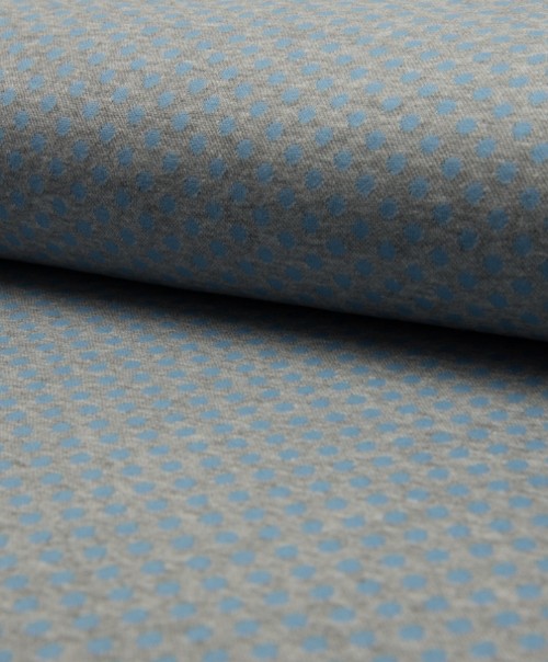 Rundvävd gråmelerad muddväv i lite kraftigare kvalitet med färgade prickar.
