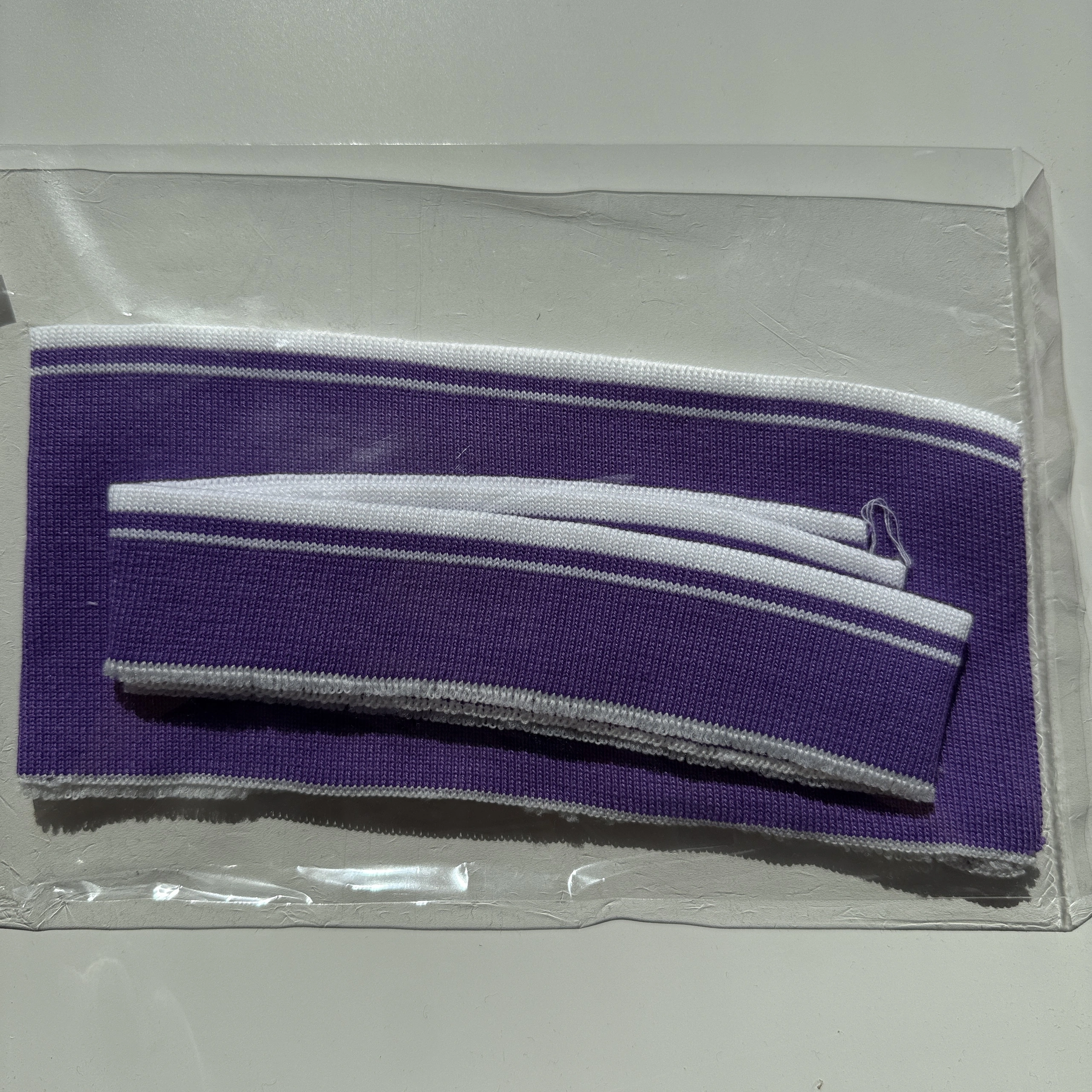 Krage och ärmslut med en vit rand längst ut.