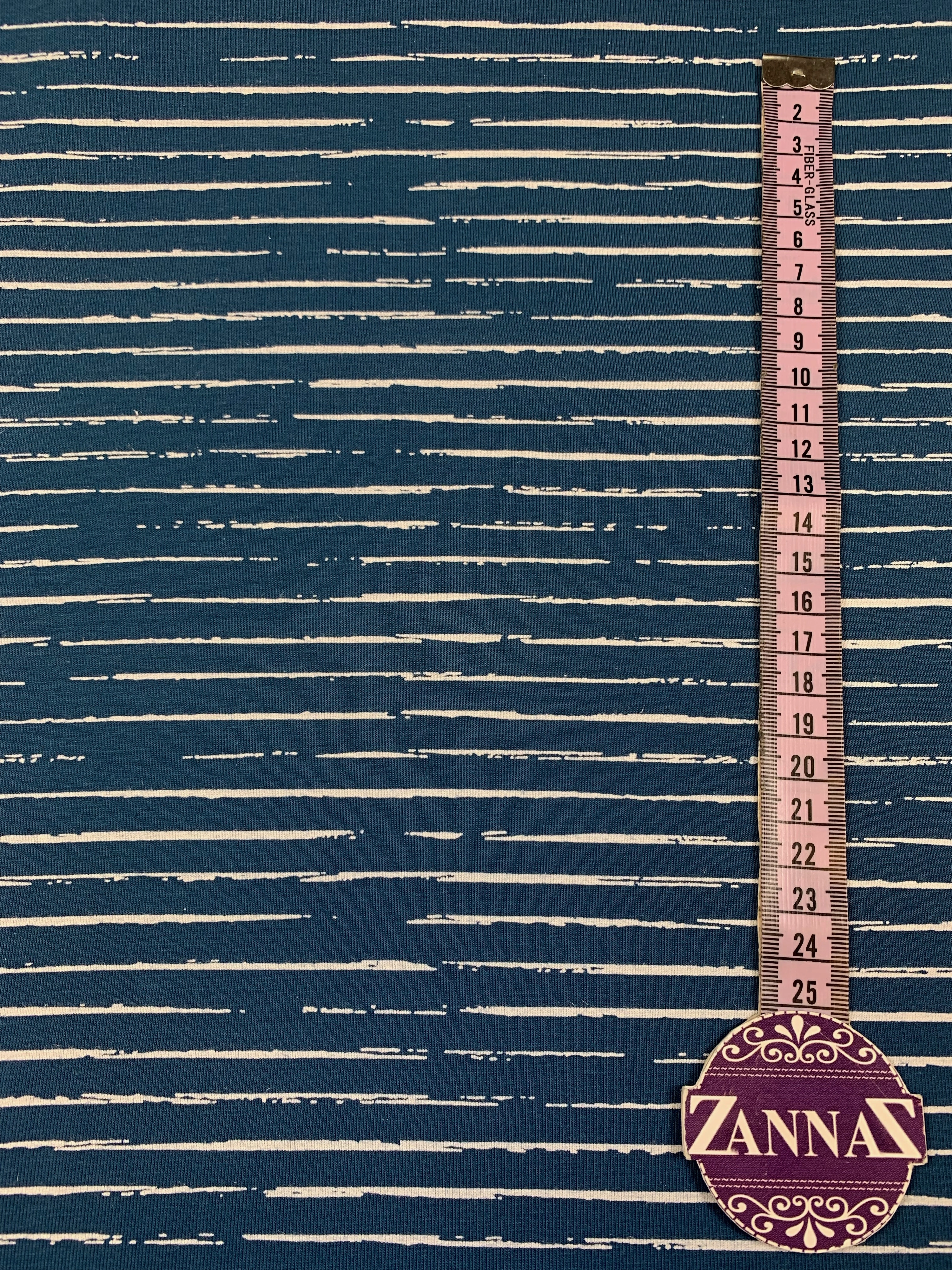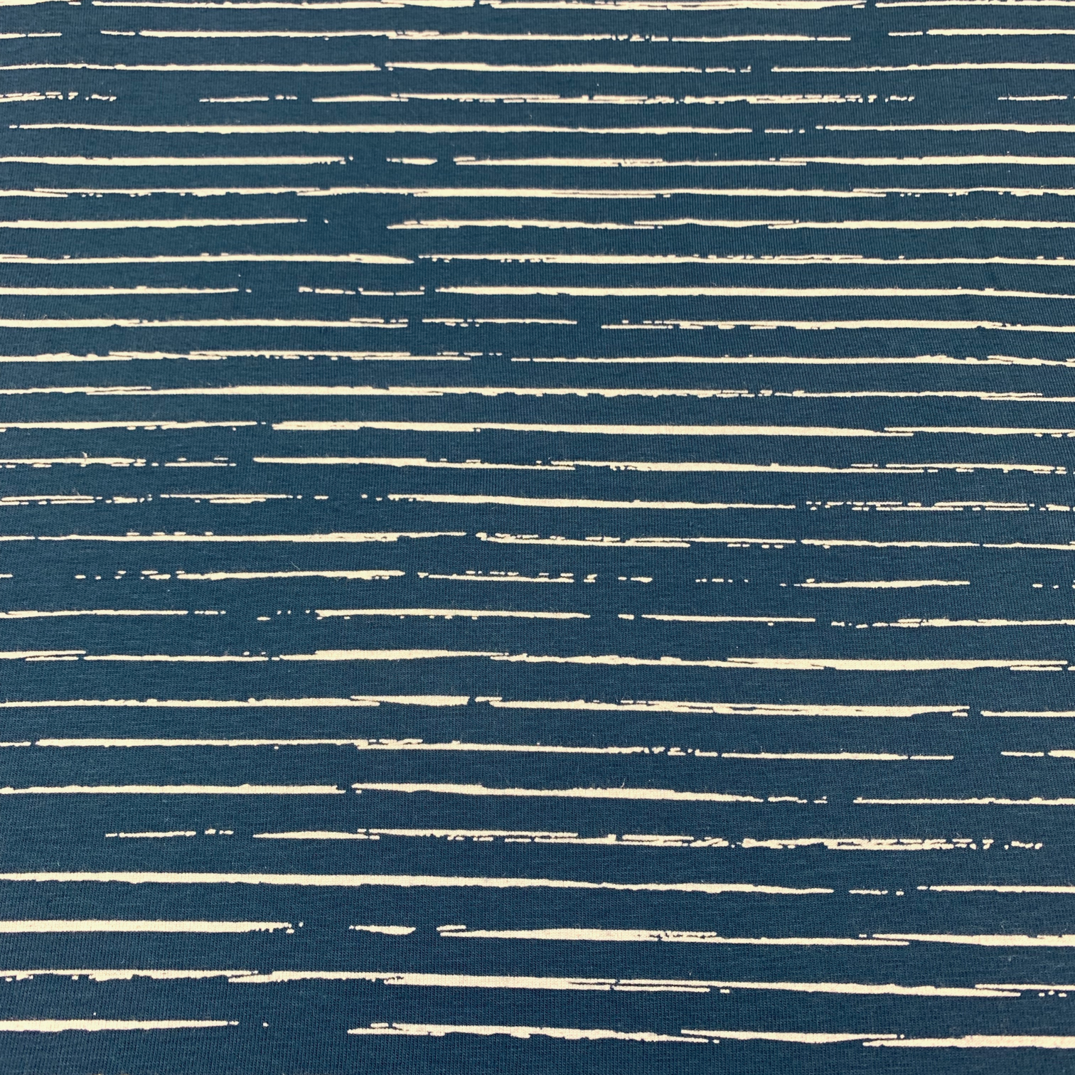 Trikåtyg i ekologiskt bomull med oregelbundna ränder på tvären.