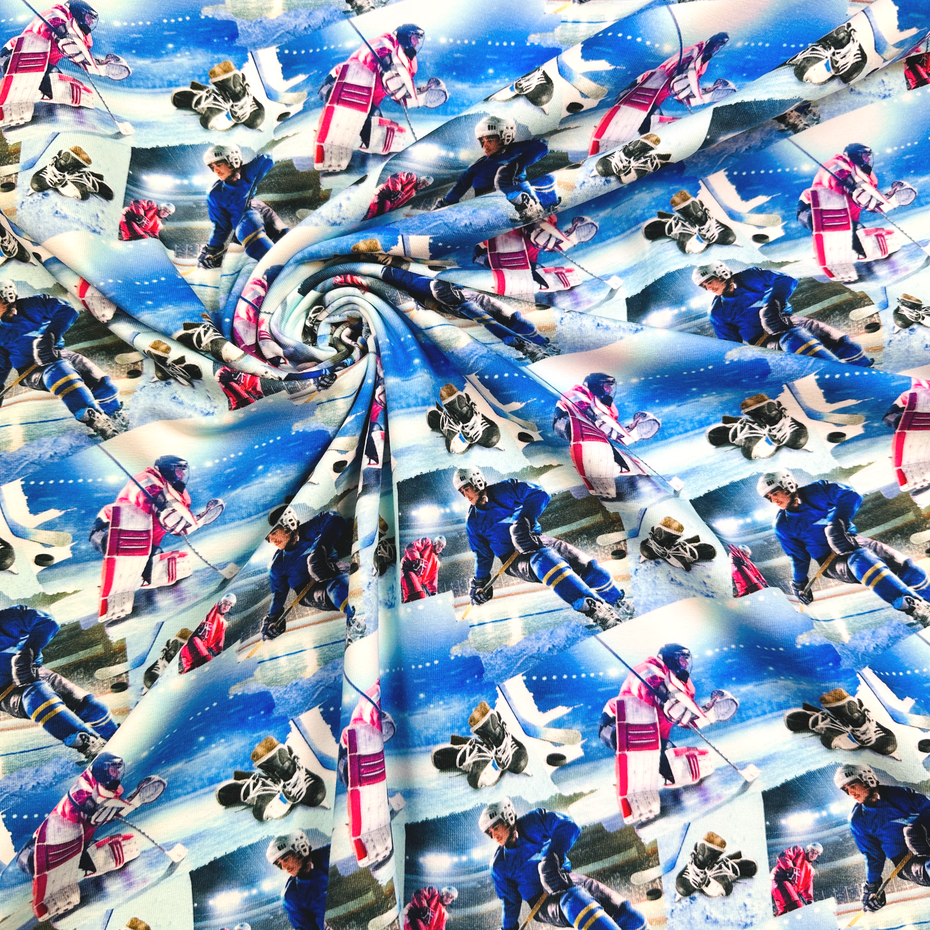 Egenproducerat trikåtyg med motiv.
