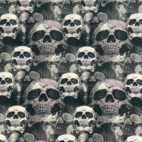Egenproducerat trikåtyg med motiv av dödskallar.