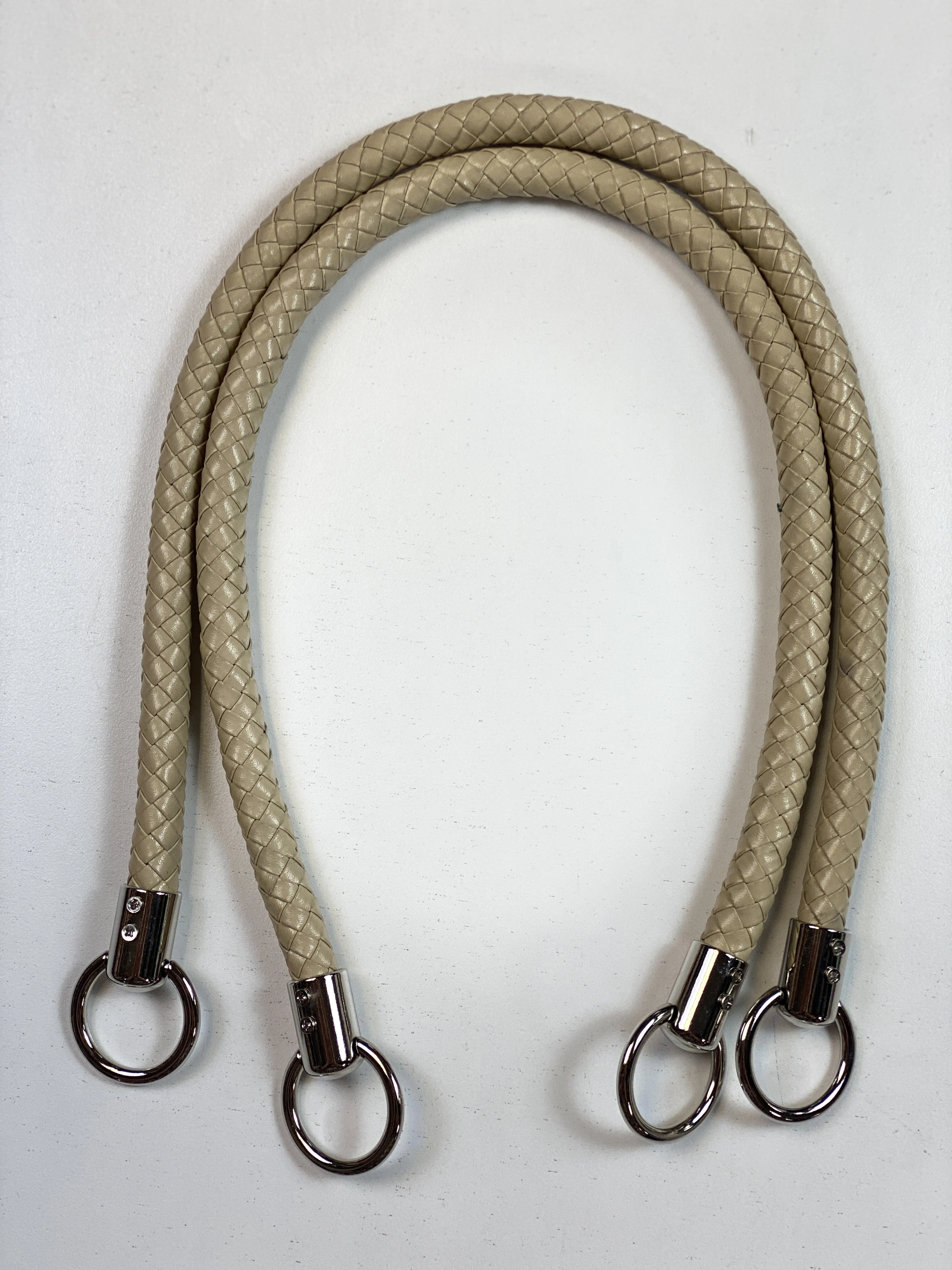 Väskhandtag med flätad rem i konstskinn med silverfärgade beslagSäljs i par (dvs 2 handtag per förpackning).
